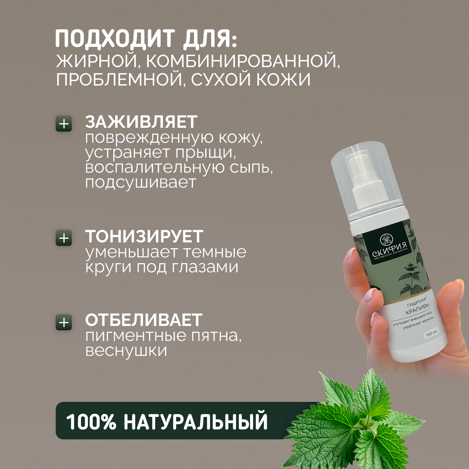 Купить Гидролат крапивы для лица натуральный Скифия, 150 мл