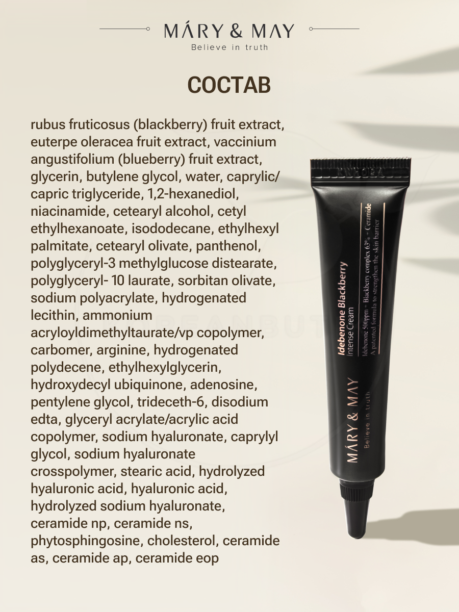 Купить Крем для лица с идебеноном и ежевичным комплексом | Mary&May Idebenone Blackberry Intense Cream 12 g