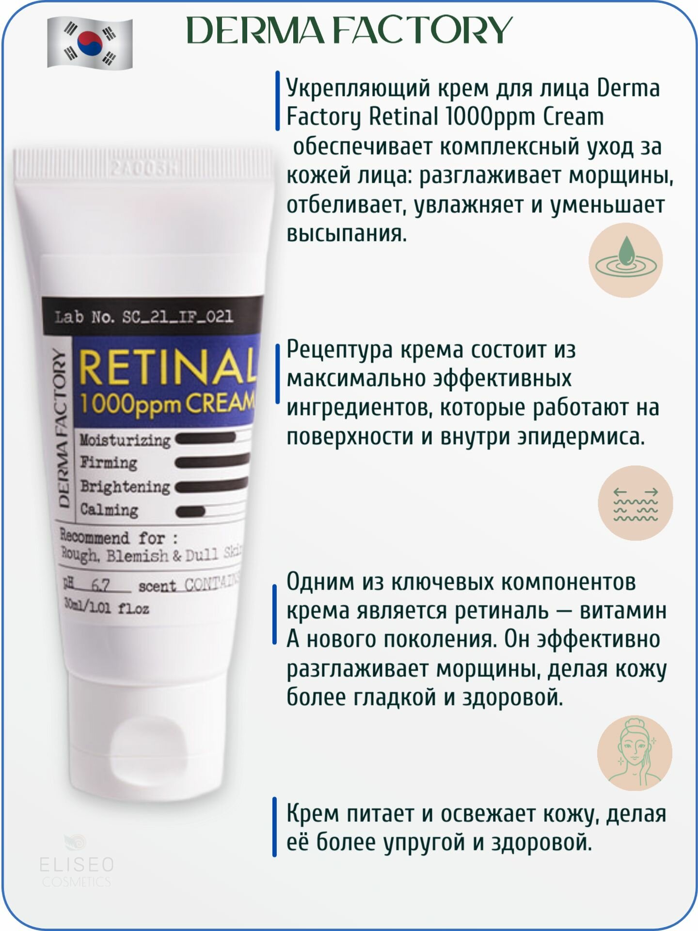СохранитьКрем для лица с ретиналем Derma Factory Reatinal 1000ppm Cream концентрированный, антивозрастной 30мл. интересное:
