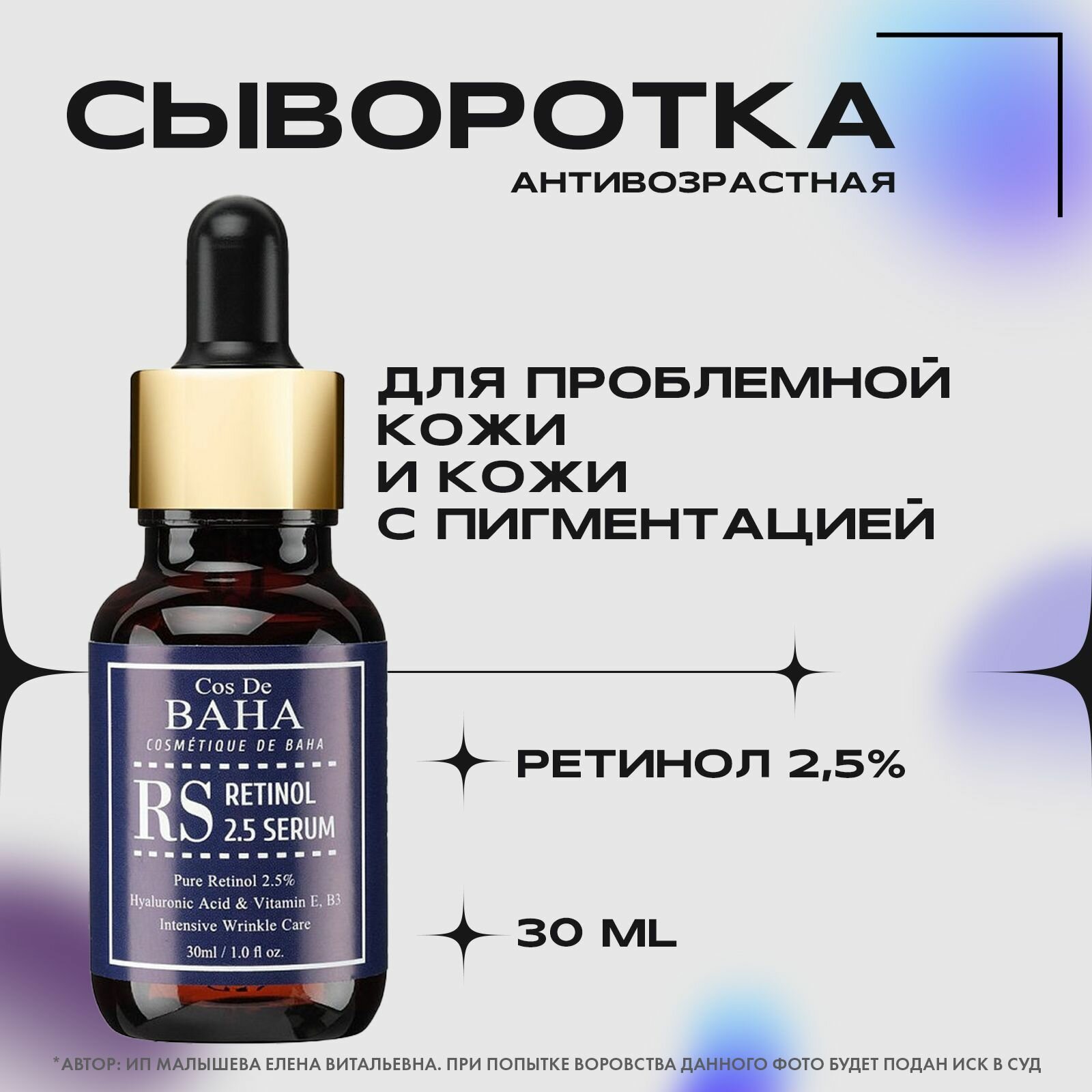 СохранитьCOS DE BAHA RS Retinol 2.5% Serum Сыворотка для лица с ретинолом, 30 мл интересное: