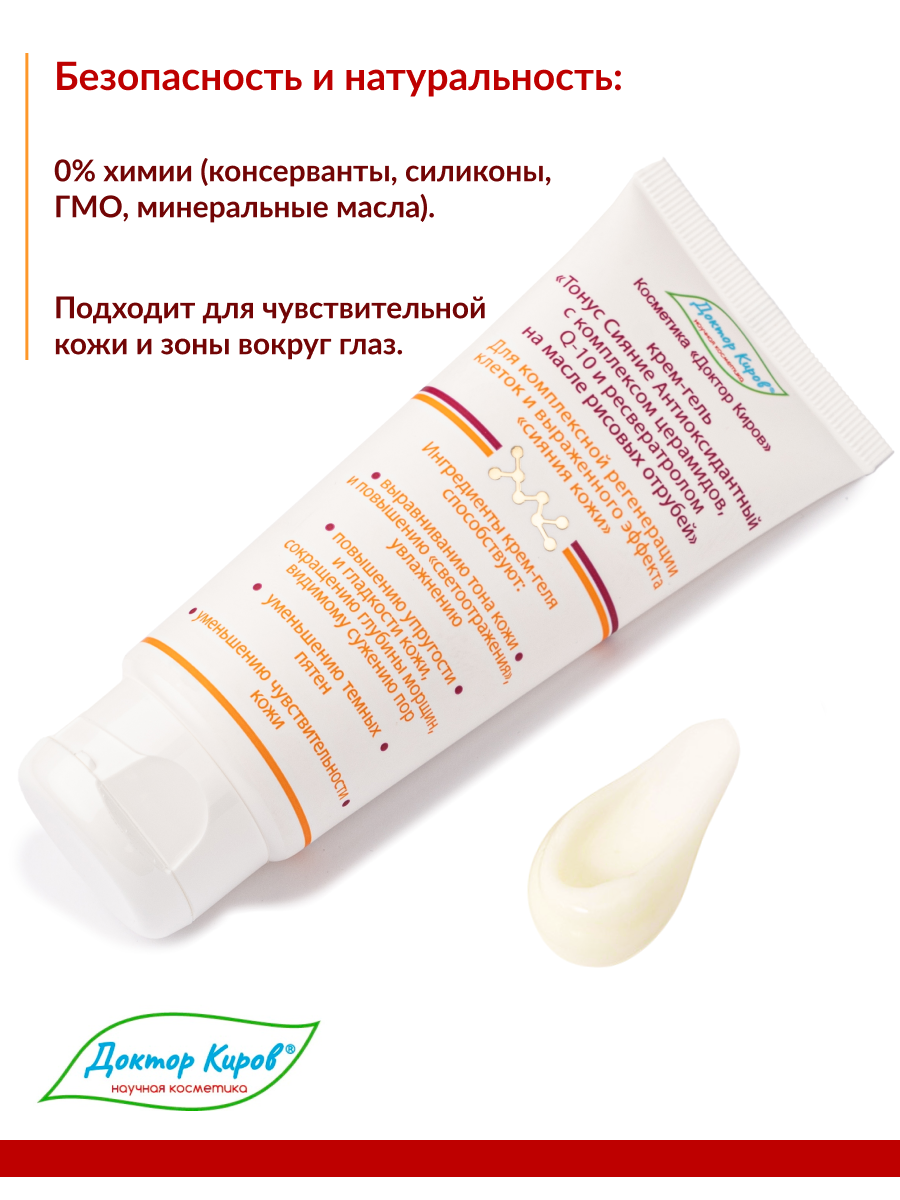 Крем -гель Тонус сияние антиоксидантный с комплексом церамидов, q-10, и ресвератролом на масле рисовых отрубей интересное: