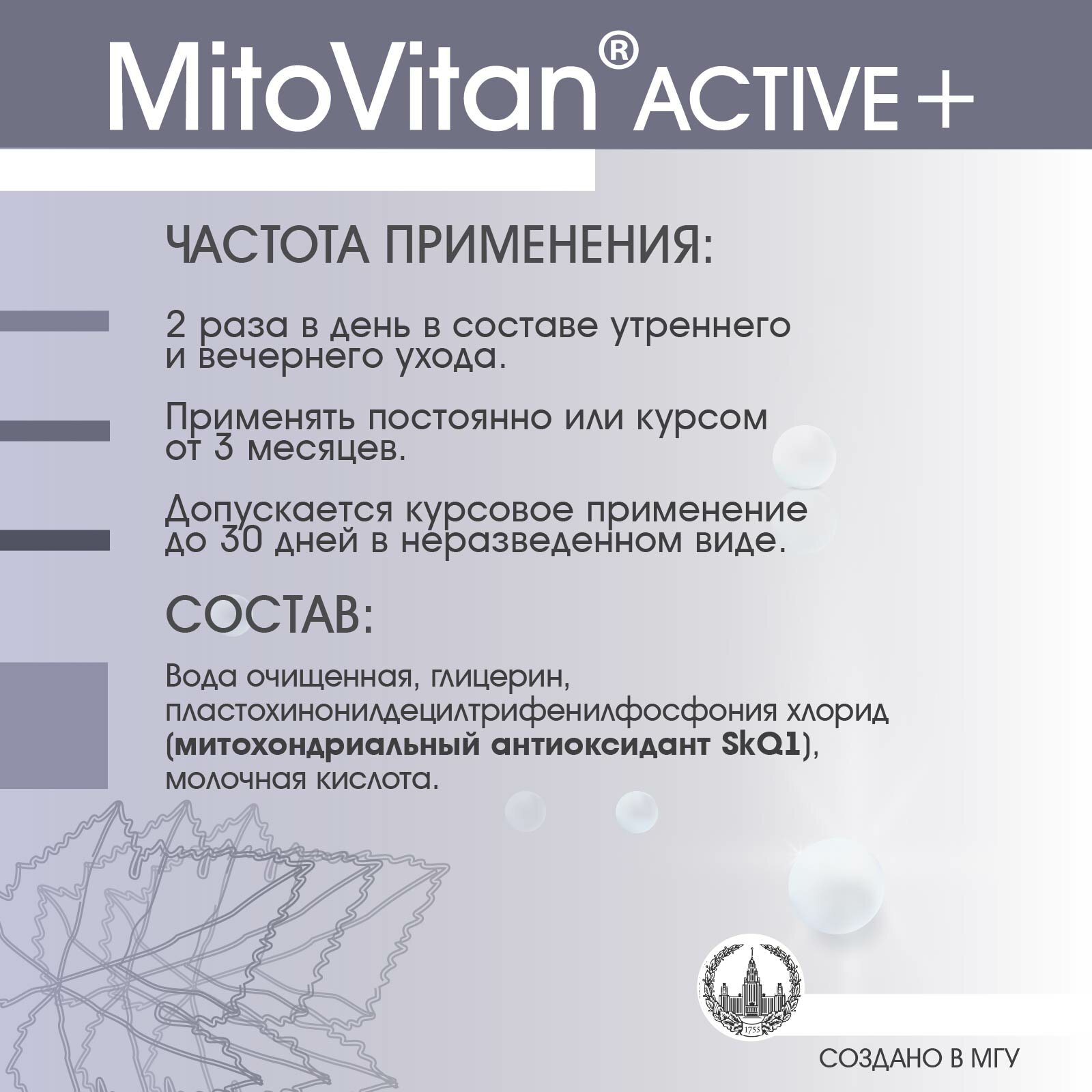 MitoVitan Active+ Концентрат антиоксиданта SkQ1 для лица от возрастных изменений, раздражений и тусклого тона кожи, 15мл интересное: