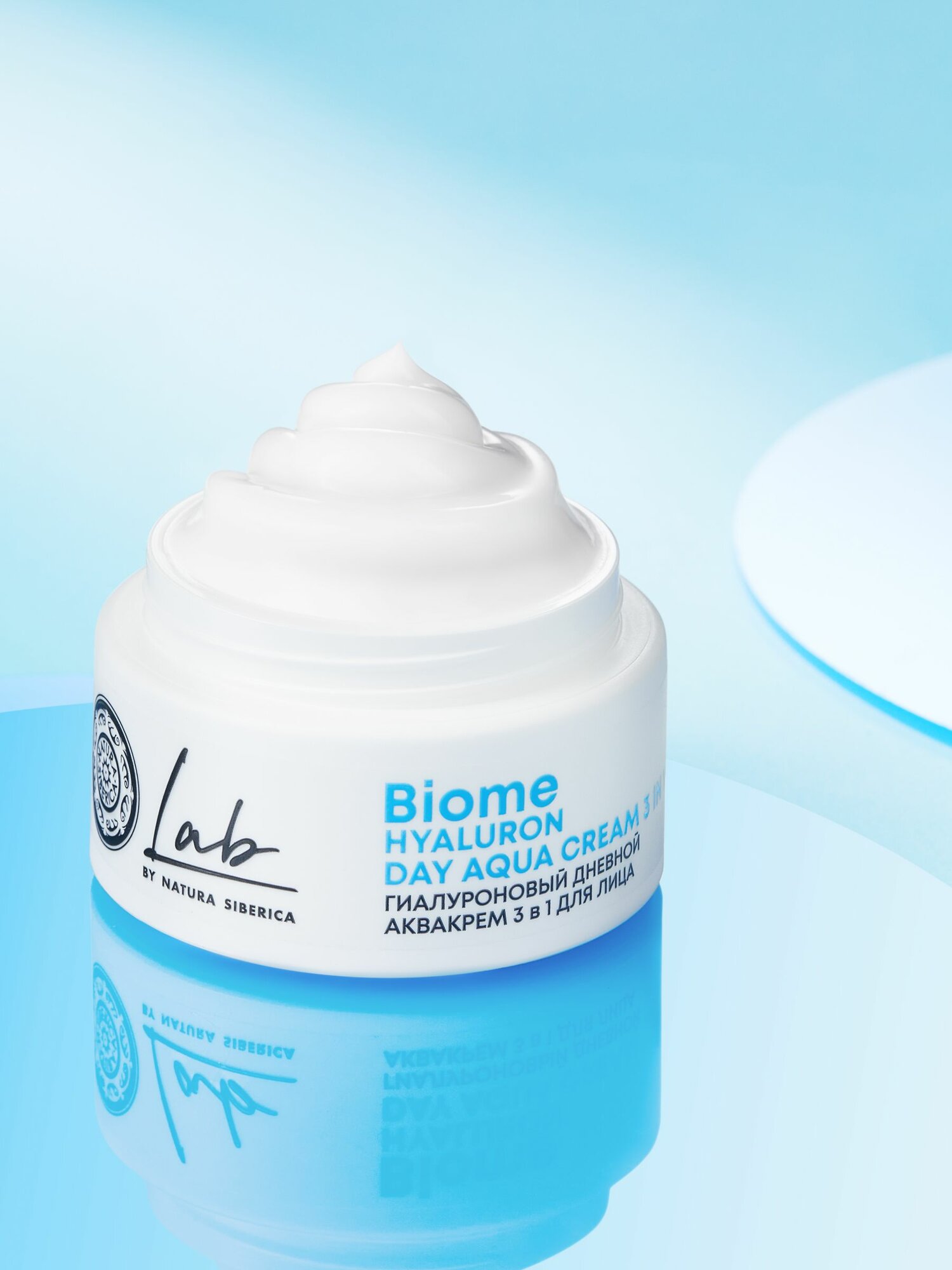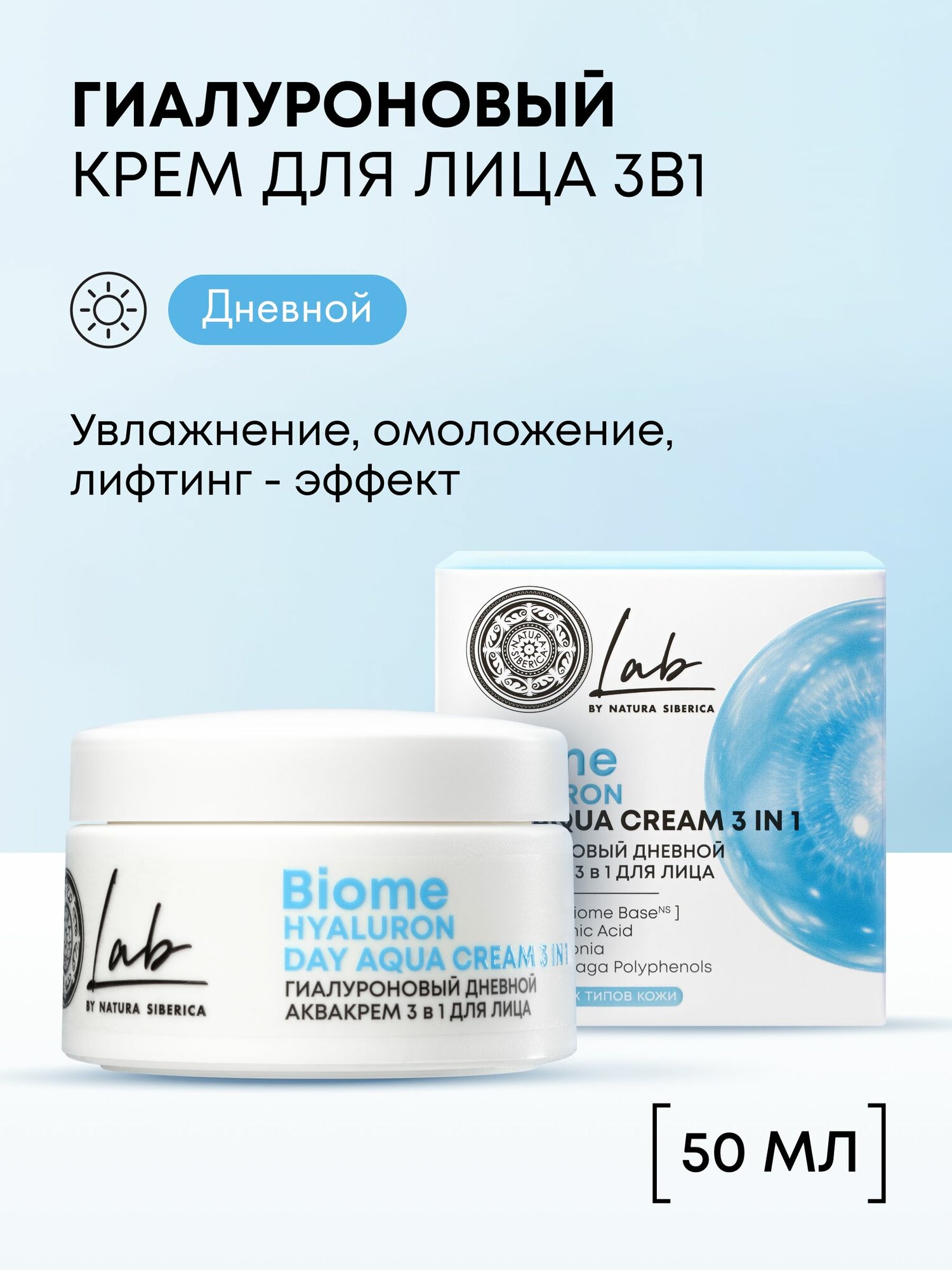 Купить Natura Siberica Lab Biome Дневной аква крем 3 в 1 для лица гиалуроновый увлажняющий, омолаживающий антивозрастной лифтинг от морщин 50 мл
