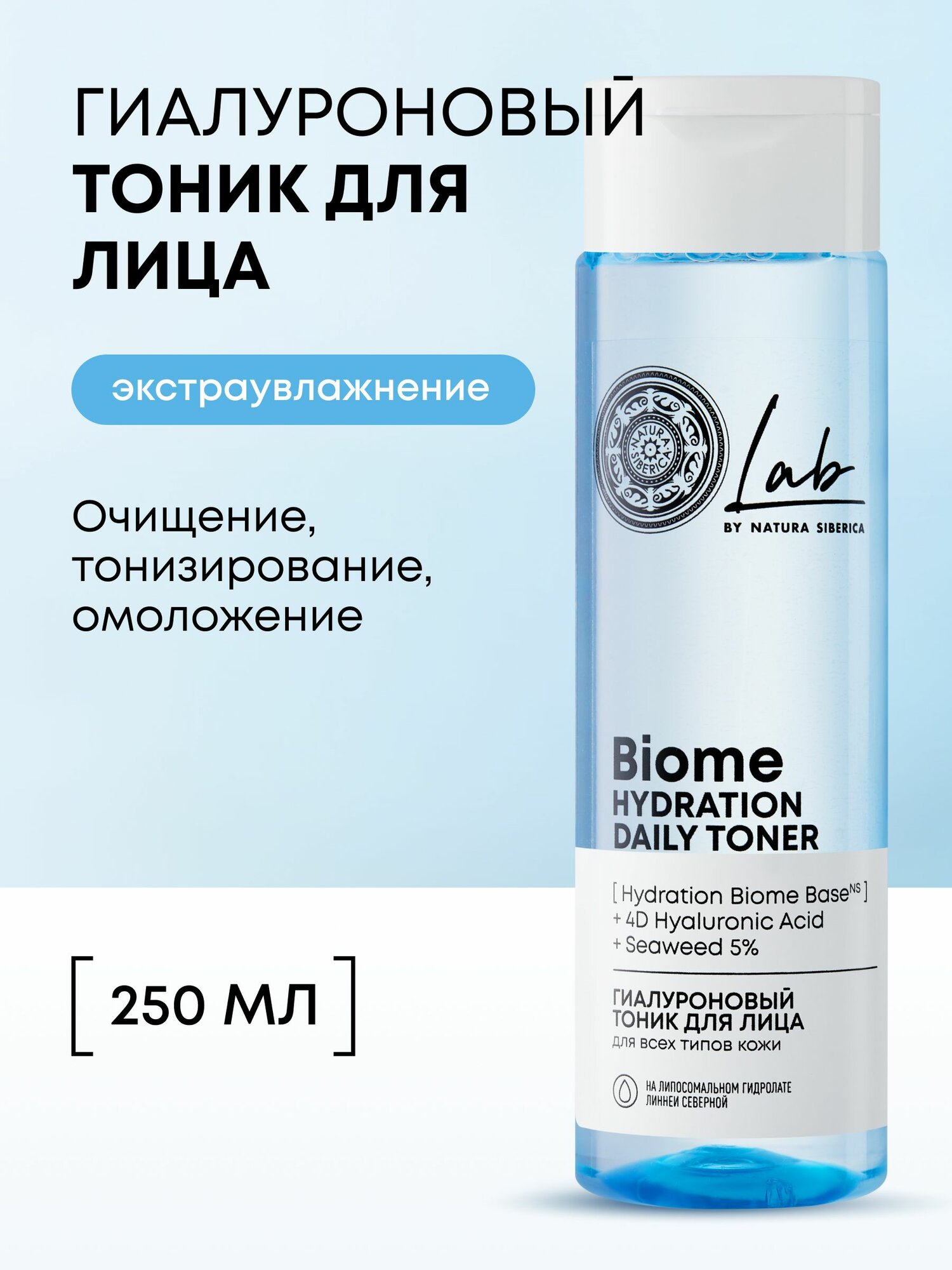 Купить Natura Siberica Lab Biome Hydration Тоник для лица увлажняющий очищающий для всех типов кожи гиалуроновый 250 мл