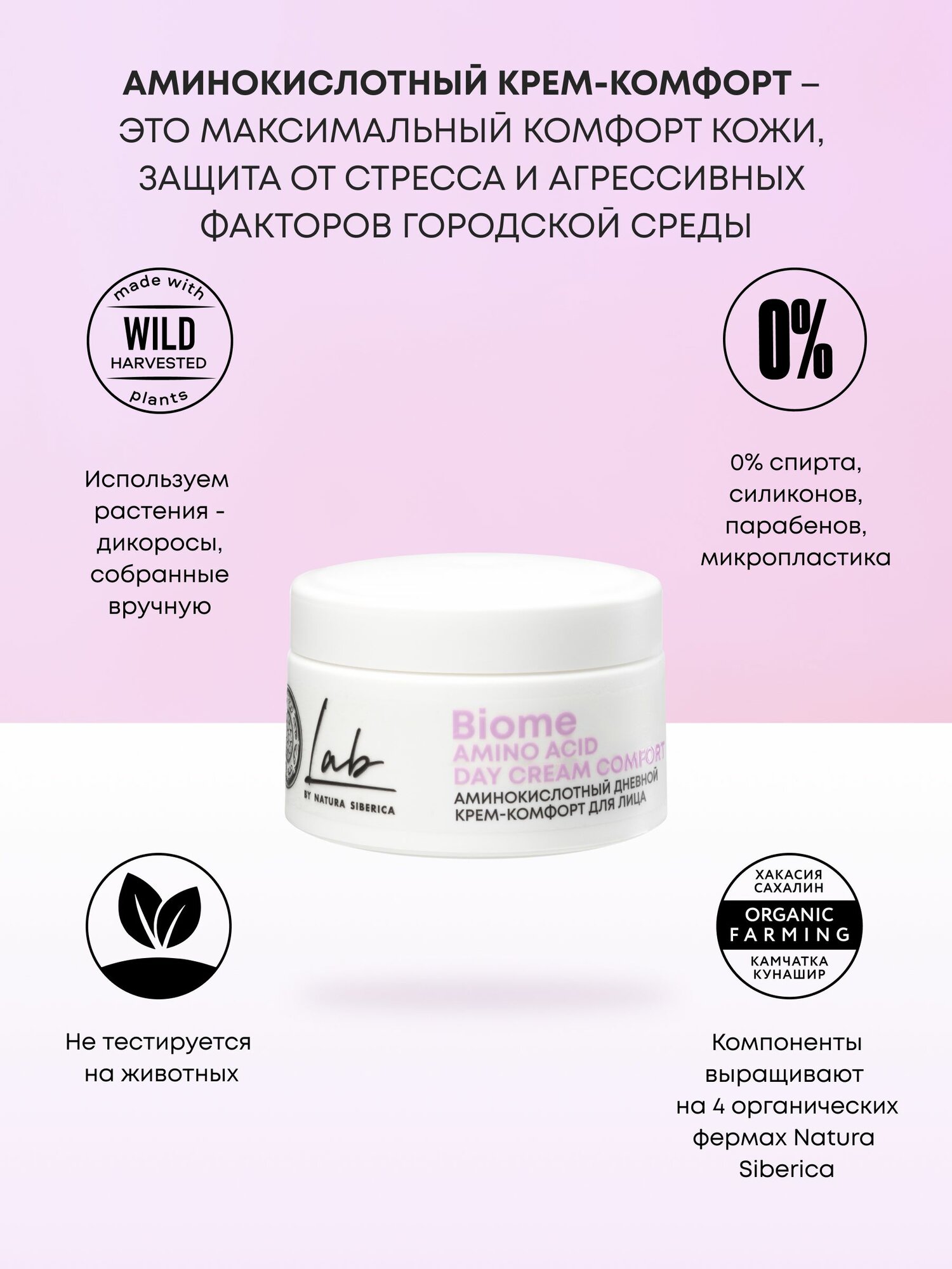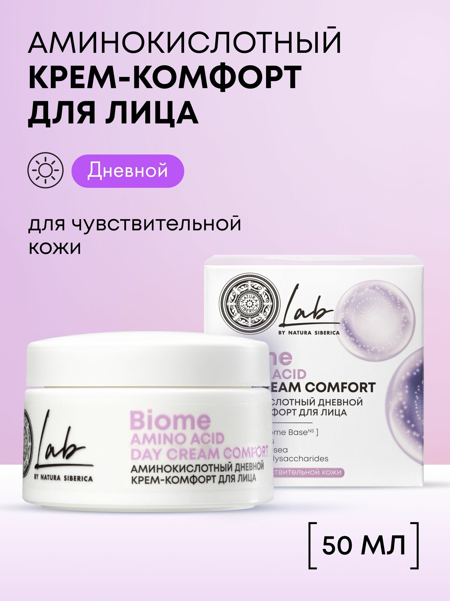 Купить Natura Siberica Lab Biome Дневной крем для чувствительной кожи лица аминокислотный успокаивающий, увлажняющий и питательный антивозрастной от морщин 50 мл