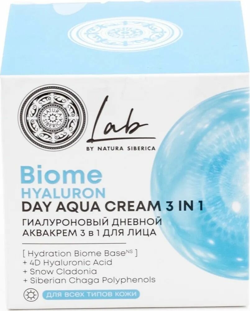 Natura Siberica Lab Biome Дневной аква крем 3 в 1 для лица гиалуроновый увлажняющий, омолаживающий антивозрастной лифтинг от морщин 50 мл