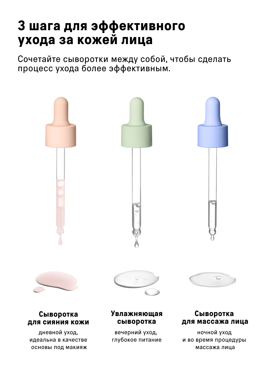 Купить Набор из трех сывороток - для сияния кожи, увлажняющая, масло для лица