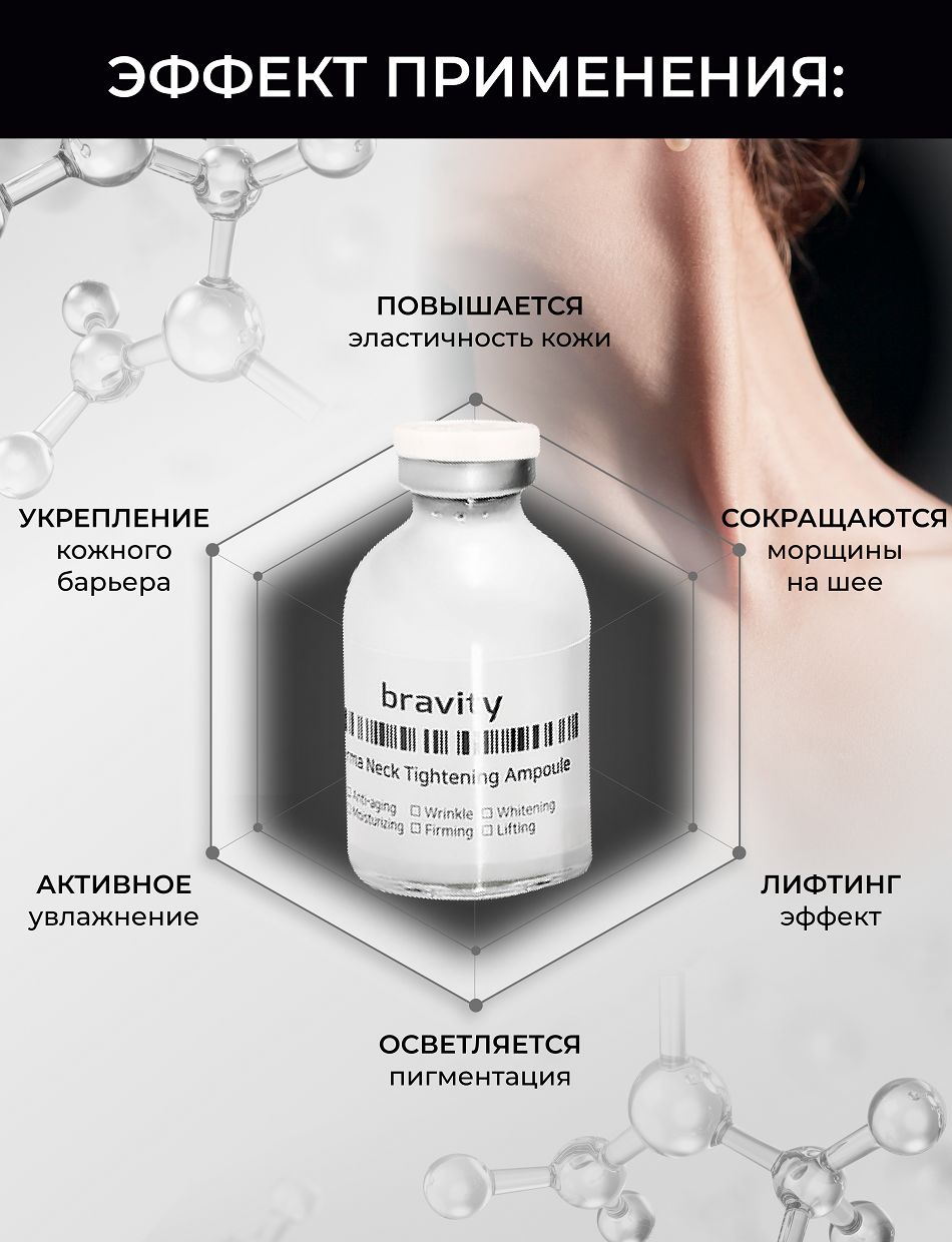 Bravity Ампульная сыворотка-лифтинг кожи шеи и декольте с пептидом (ботокс эффект) Derma Tightening Neck Ampoule 30 мл интересное:
