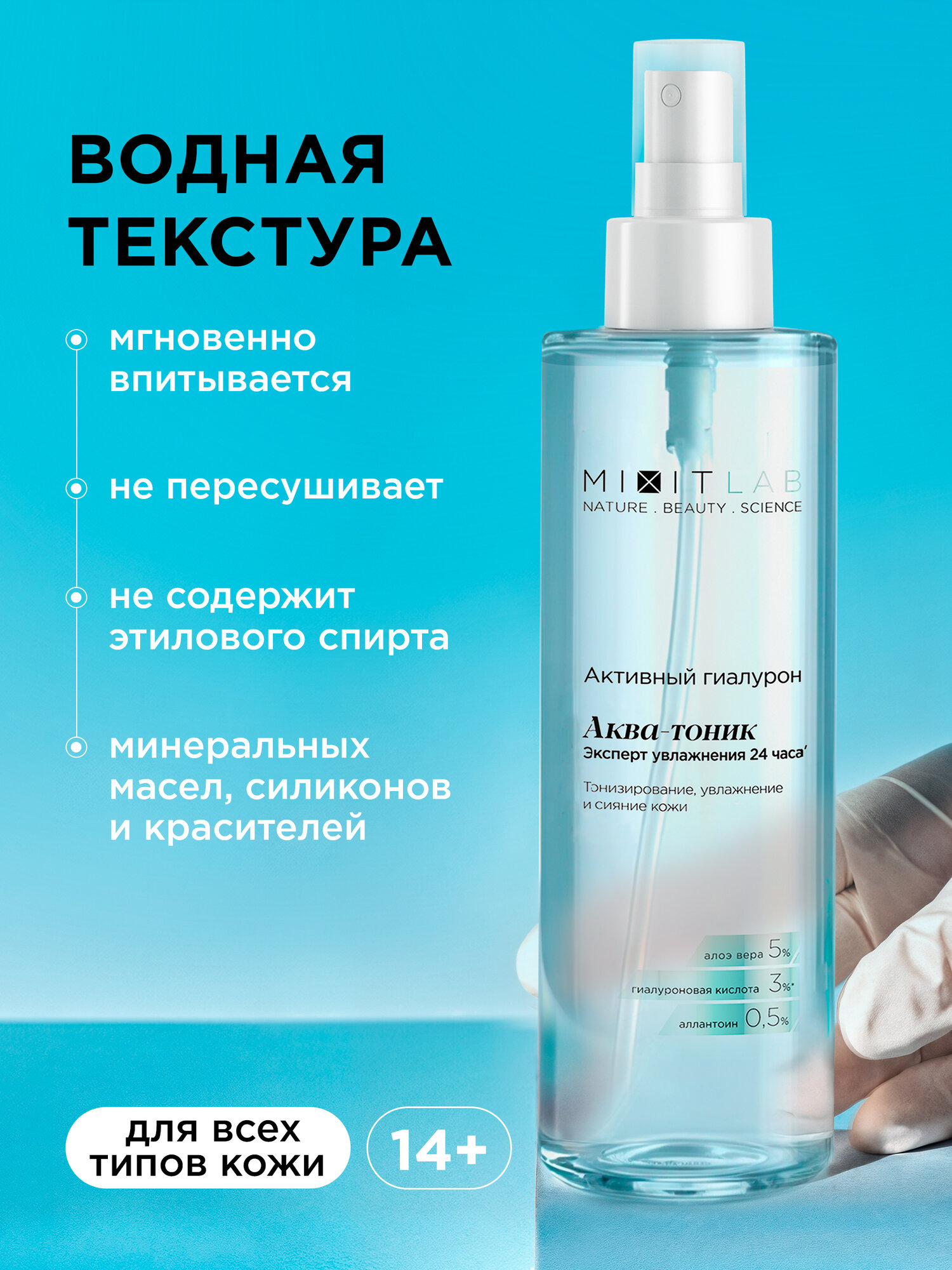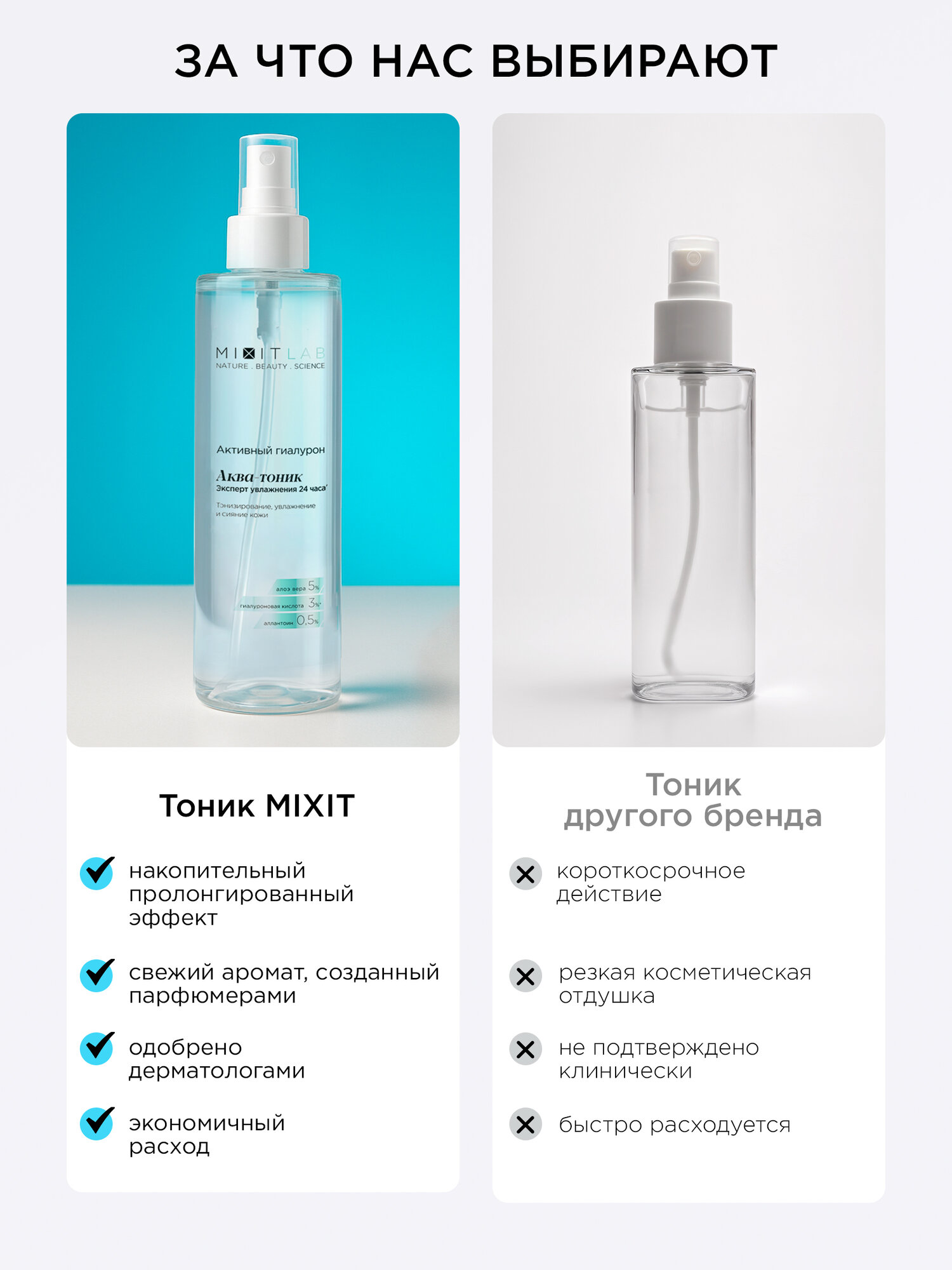 MIXIT Увлажняющий аква - тоник для лица с гиалуроновой кислотой, 200 мл интересное:
