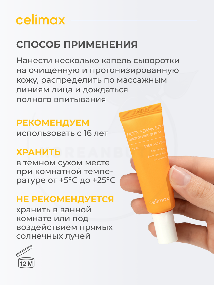 Купить Сыворотка для выравнивания тона и рельефа кожи | Celimax Pore+Dark Spot Brightening Serum 10ml