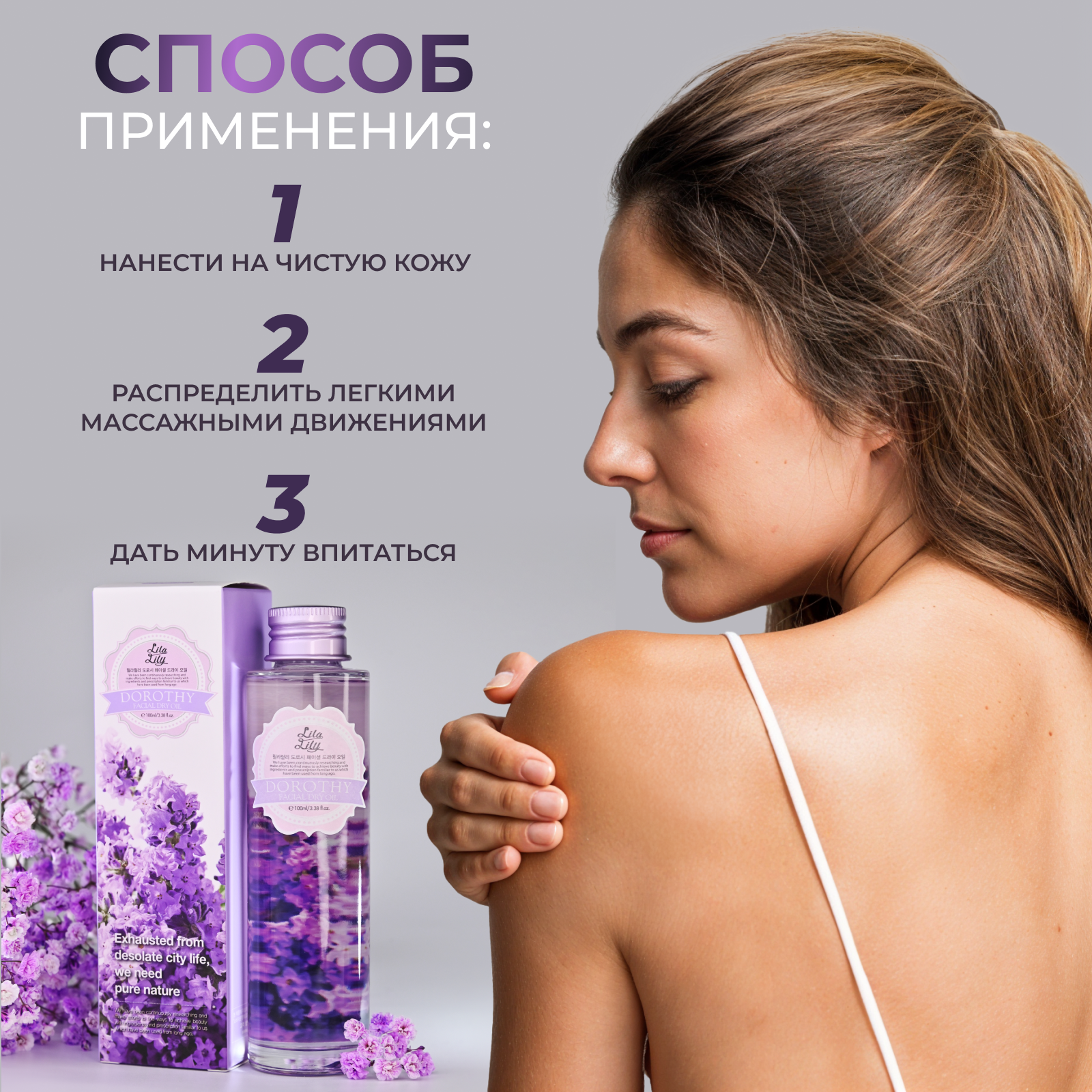 Konad LILA LILY Dorothy Facial Dry Oil Сухое масло для лица из 7 растительных масел для увлажнения , питания и защиты кожи , 100 мл интересное: