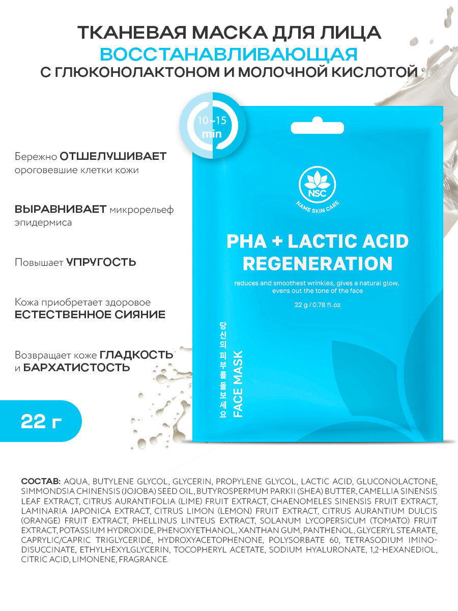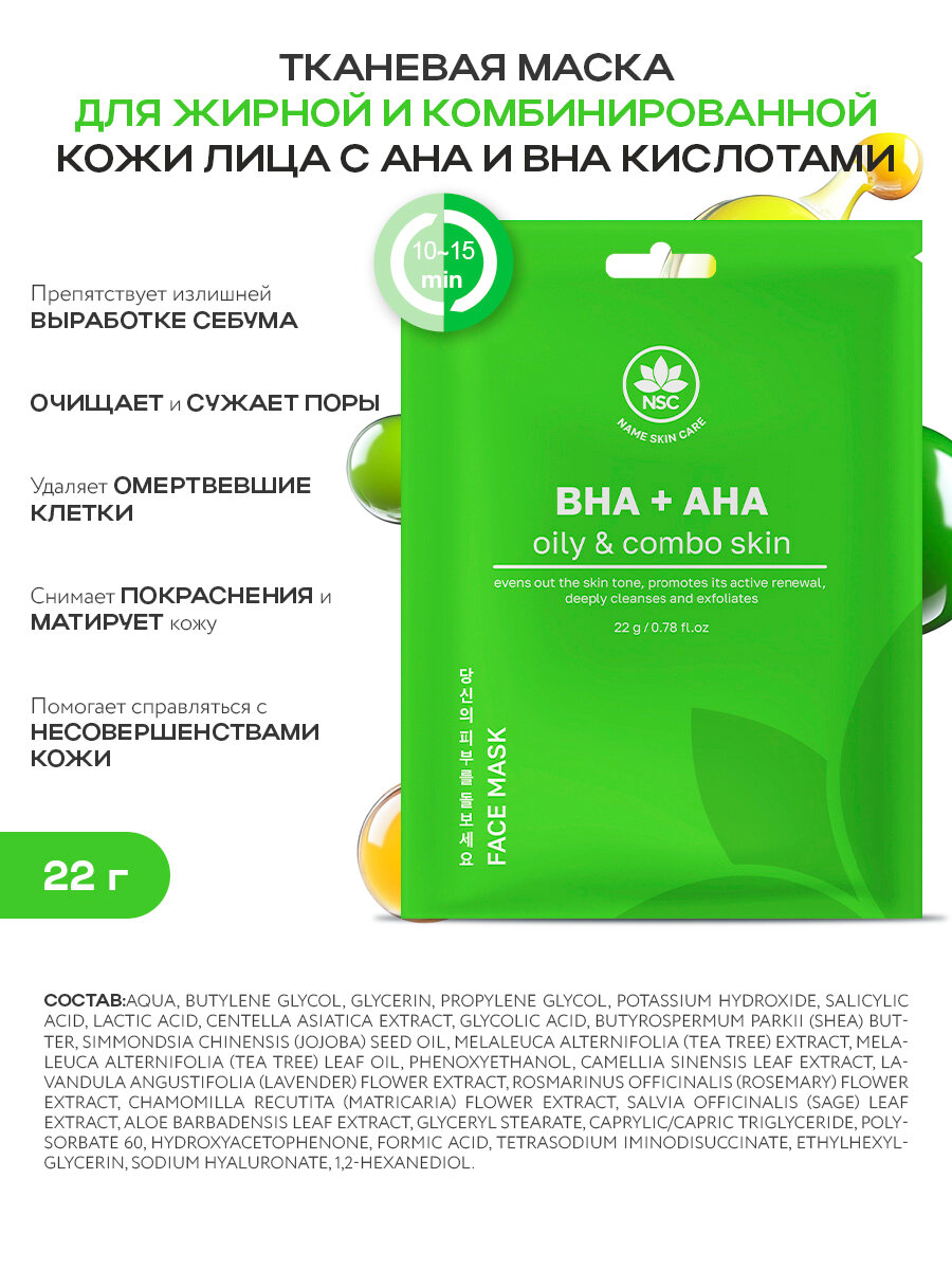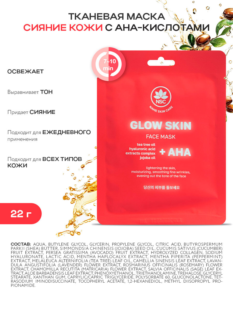 NSC Набор тканевых корейских масок с AHA кислотами 5 штук