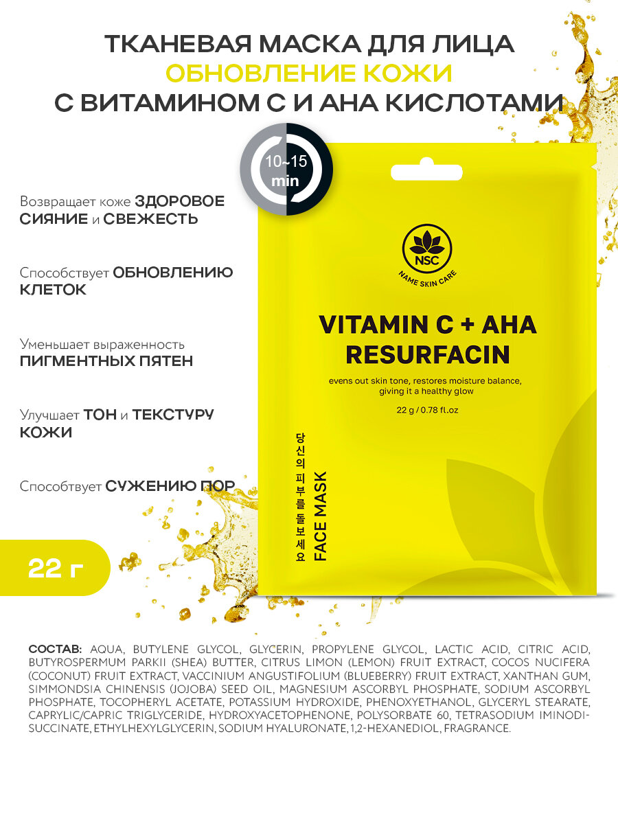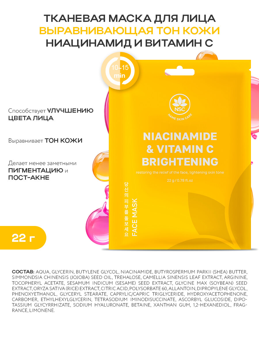 NSC Тканевые маски для лица Ниацинамид и Витамин C, 30 шт