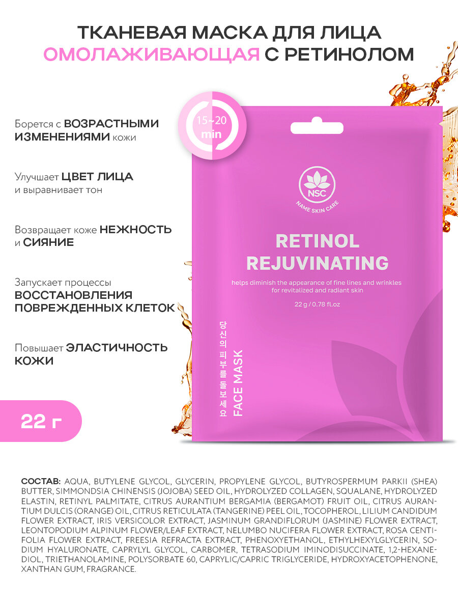 Купить Тканевая маска для лица Name Skin Care набор 25 штук ( 7 видов масок ), Корея