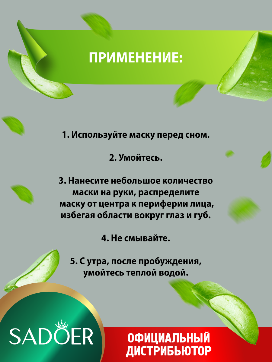 СохранитьУвлажняющая гелевая ночная маска для лица Sadoer с соком алоэ вера 20 шт. по 4 мл. х 3 уп. интересное:
