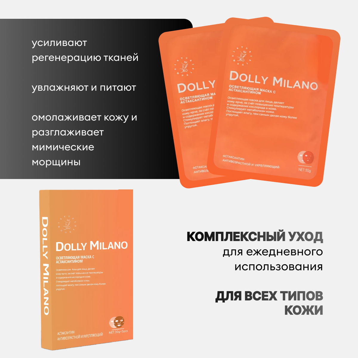 Купить Маска для лица DOLLY MILANO "Астаксатин", гелевая, 5 шт, для всех типов кожи