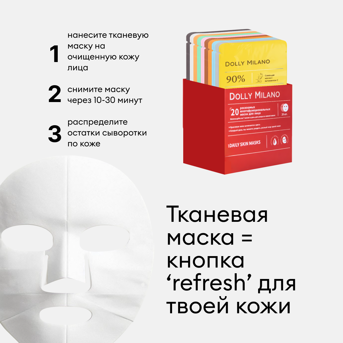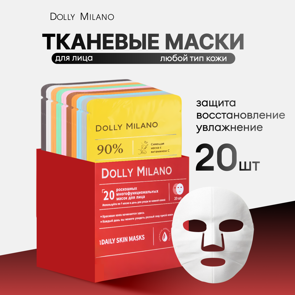 Купить Набор масок для лица DOLLY MILANO , тканевая, гидрогелевая, 20шт