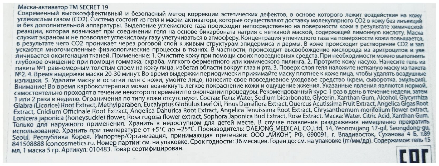 [ESTHETIC HOUSE] карбокситерапия Маска-активатор SECRET19 CO2 Esthetic Formula Carbonic Mask 1 шт интересное: