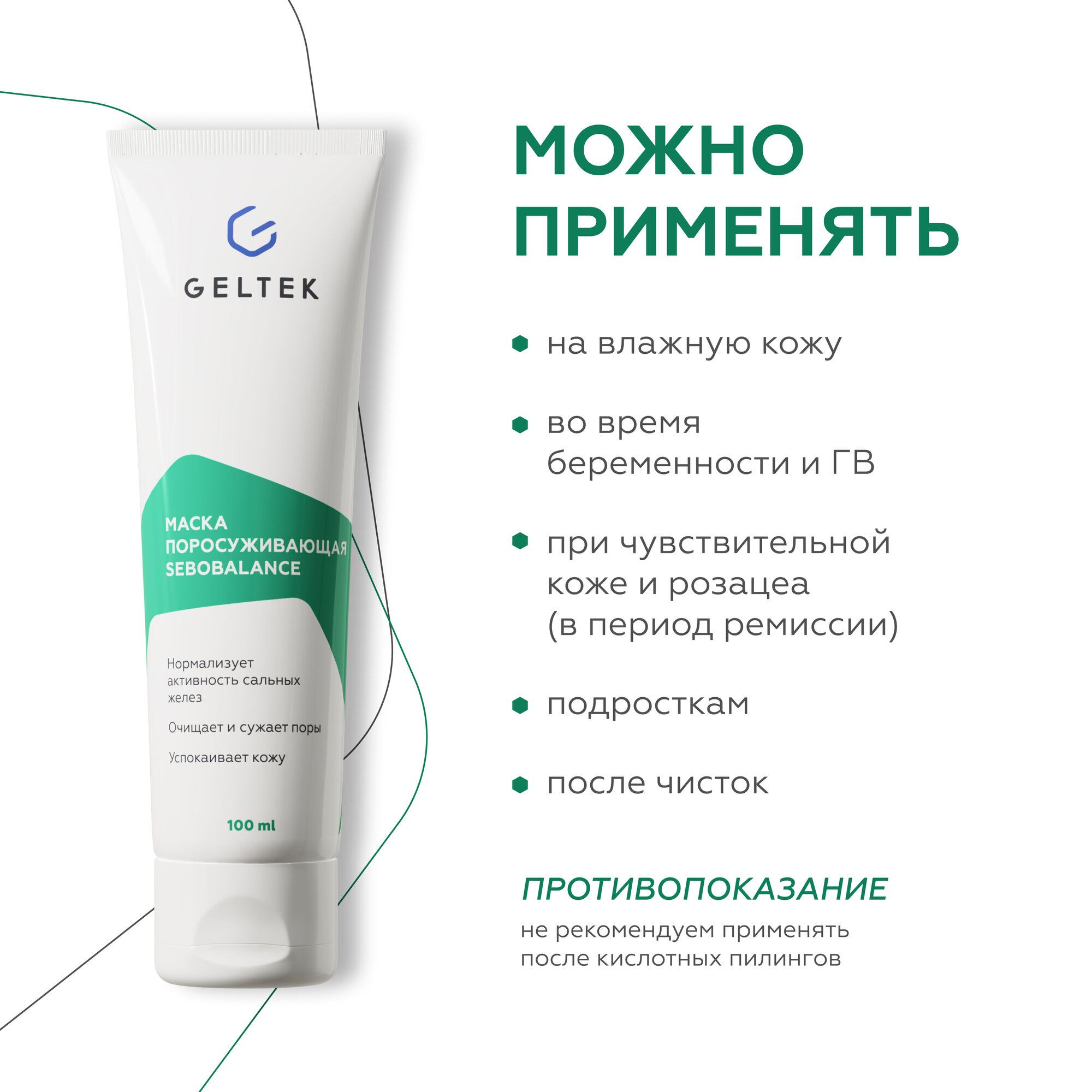 Гельтек Поросуживающая маска для лица Sebobalance, от прыщей и воспалений, успокаивающая после чистки 100 мл интересное: