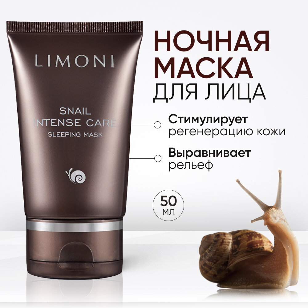 LIMONI Ночная антивозрастная маска для лица с муцином улитки, Корея 50 мл интересное:
