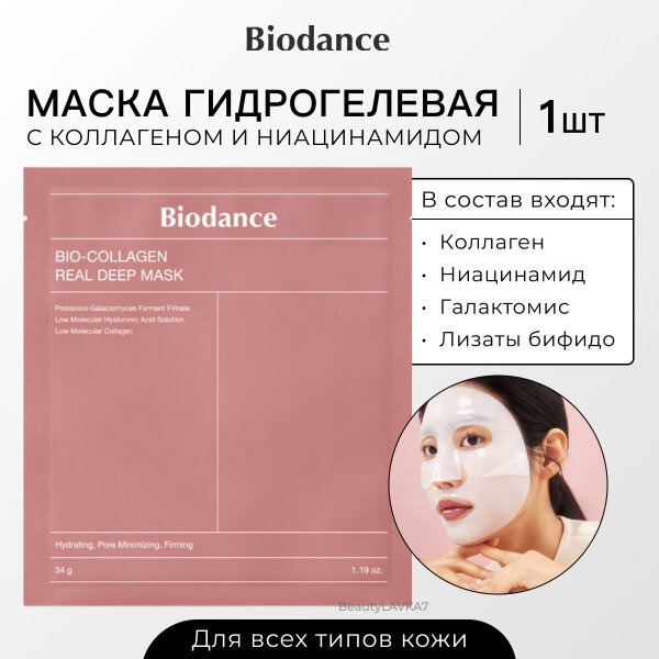 Biodance Bio-Collagen Real Deep Mask Глубокоувлажняющая гидрогелевая маска с коллагеном и ферментами, 1 шт