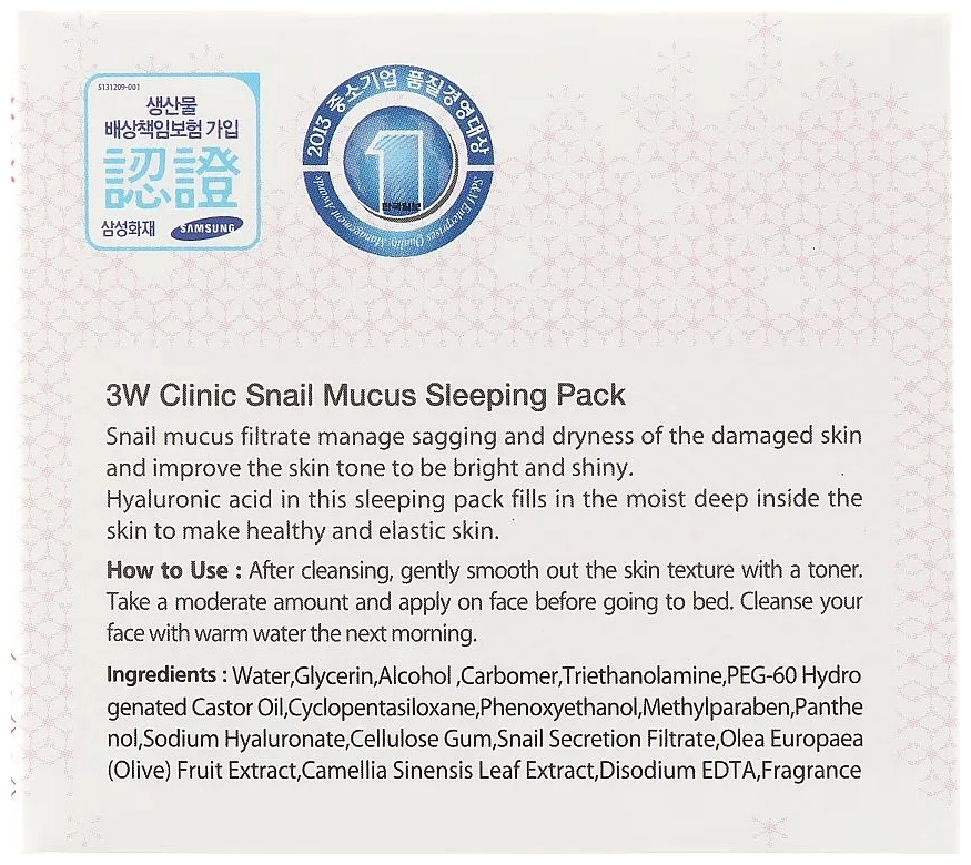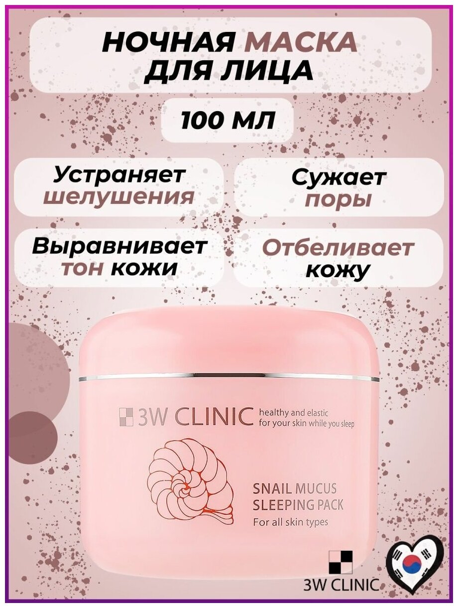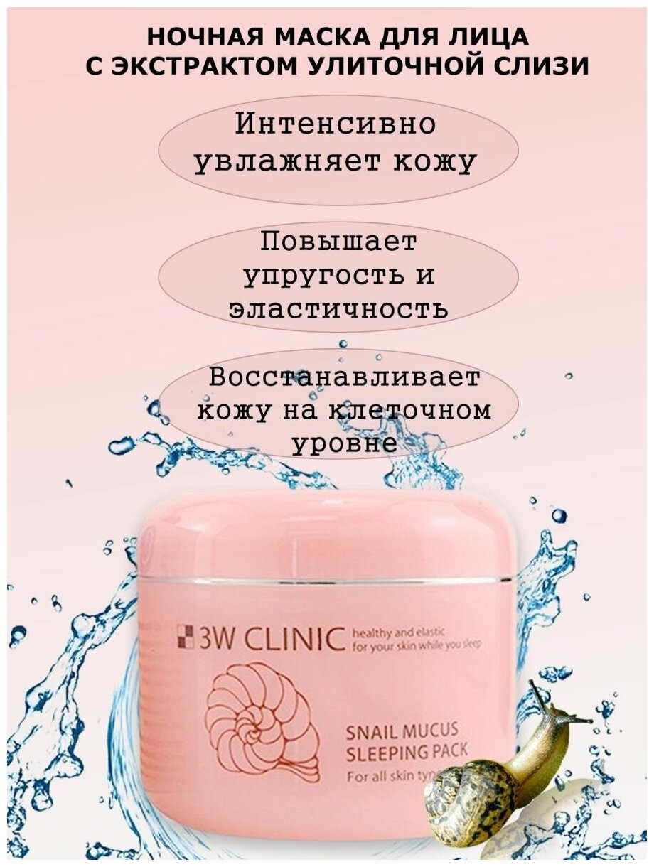 Ночная маска для лица c экстрактом улиточной слизи 3W Clinic Snail Mucus Sleeping Pack 100 мл интересное:
