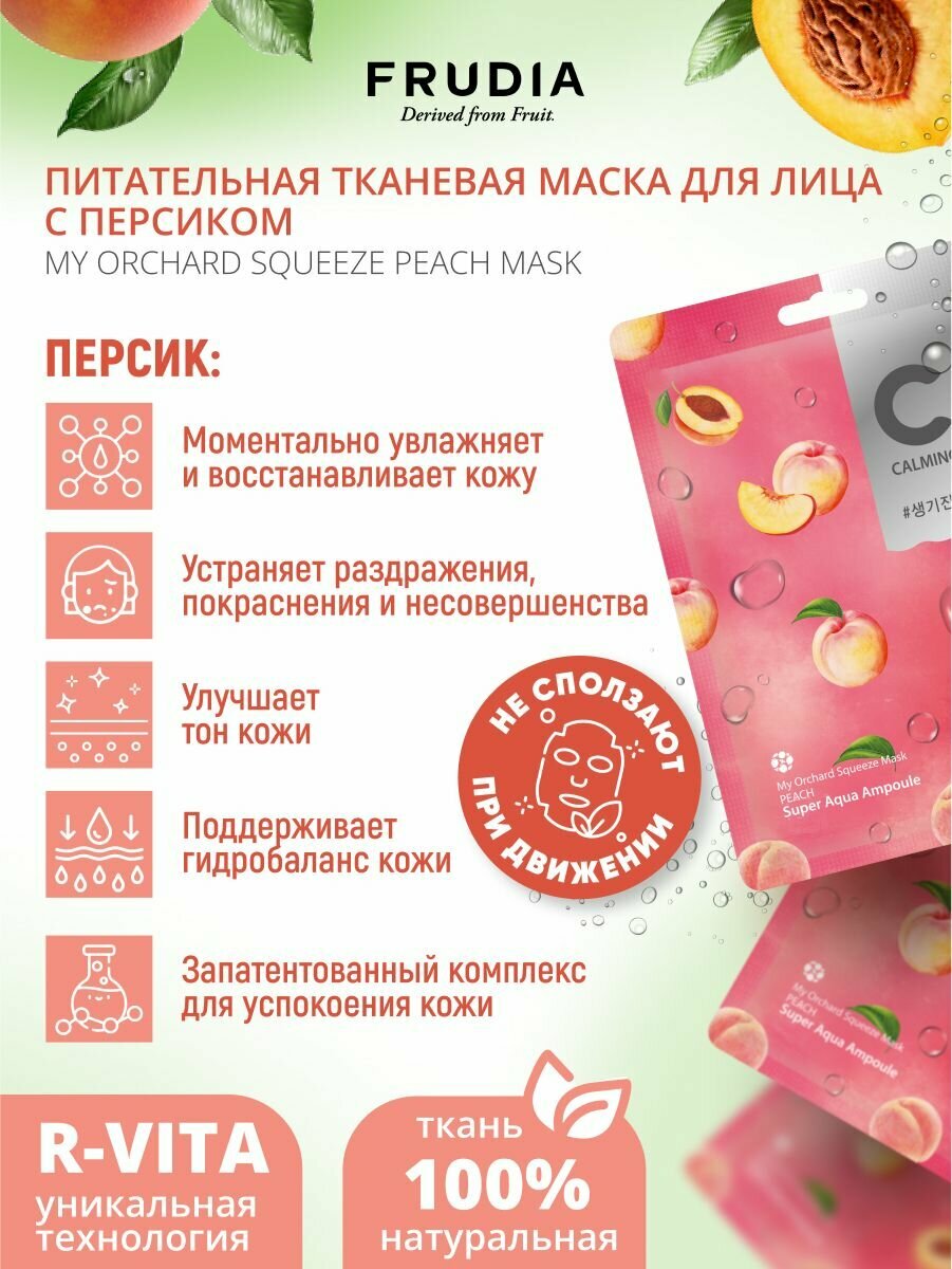 FRUDIA Маски для лица тканевые набор питательные с персиком 3шт*20мл, Корея интересное:
