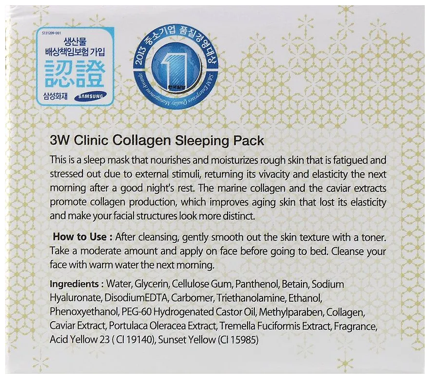 3W CLINIC Ночная маска для лица с коллагеном Collagen Sleeping Pack, 100 мл интересное: