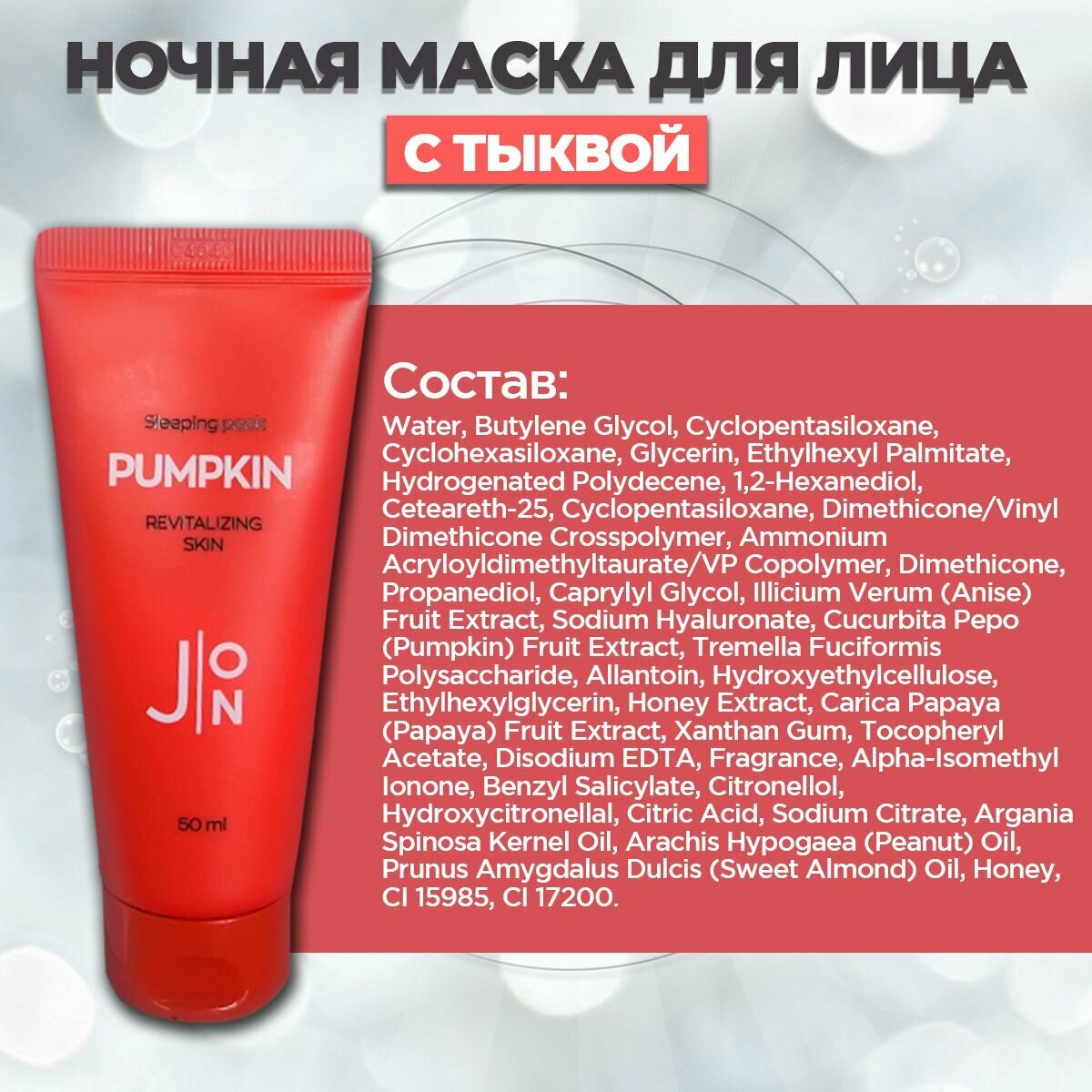 J: ON Маска для лица ночная с тыквой Pumpkin Revitalizing Skin Sleeping Pack восстанавливающая 50 мл Корея интересное:
