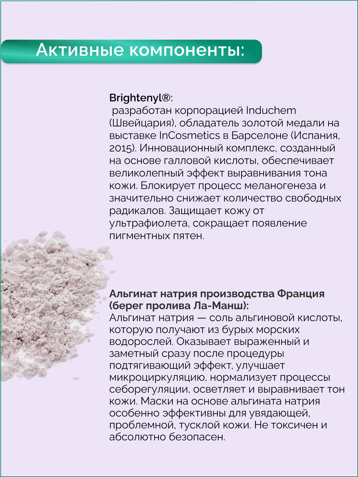 Альгинатная омолаживающая осветляющая маска для лица Algomask интересное:
