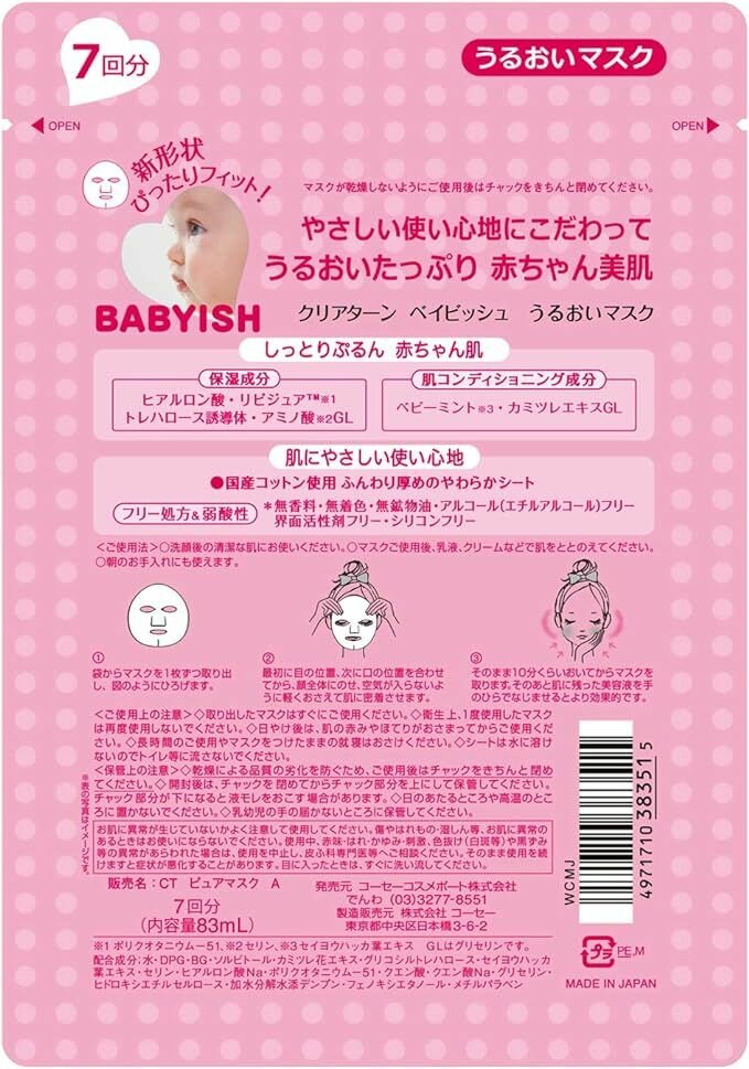 Купить Kose Маска тканевая для лица с гиалуроновой кислотой Clear turn babyish moisture mask, 7 шт