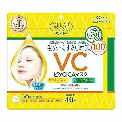 Купить KOSE Cosmeport Тканевая маска увлажняющая Clear Turn для ухода за тусклой кожей лица, с витамином С и экстрактом центеллы азиатской, 40шт.