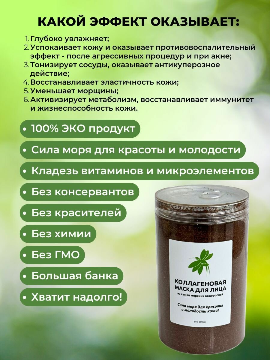 Маска для лица натуральный коллаген из семян водорослей 500г интересное: