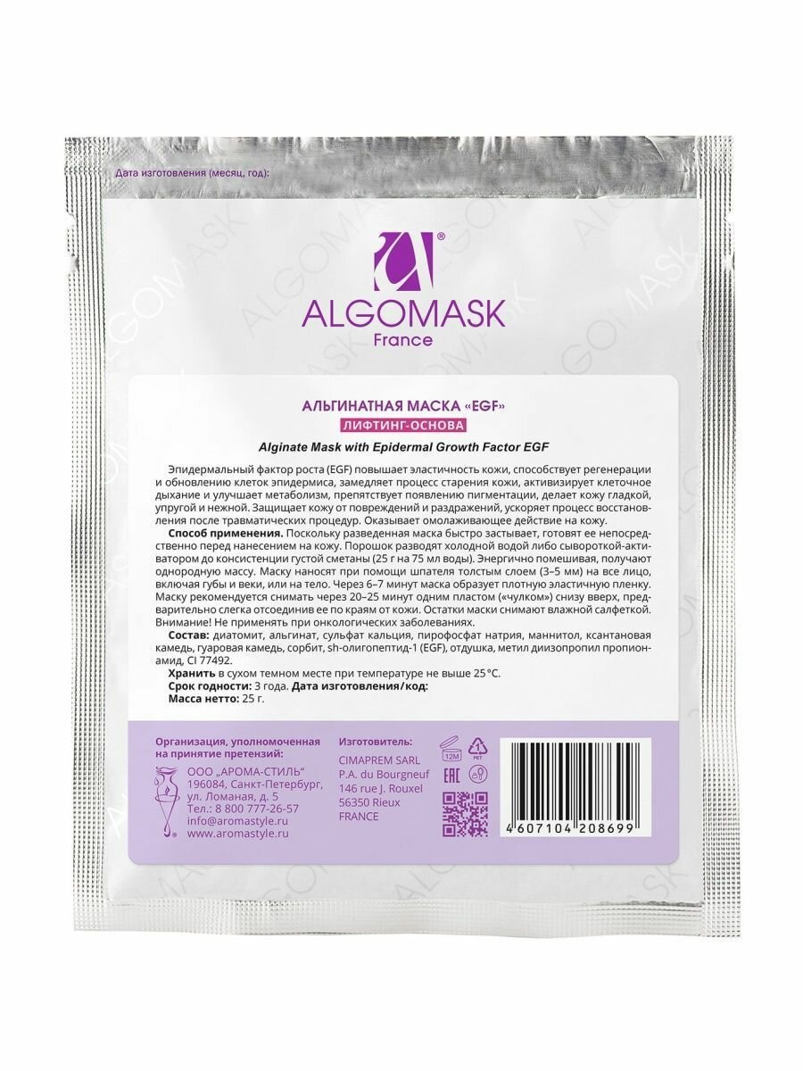Маска альгинатная для лица с Факторами роста EGF 25 гр. интересное: