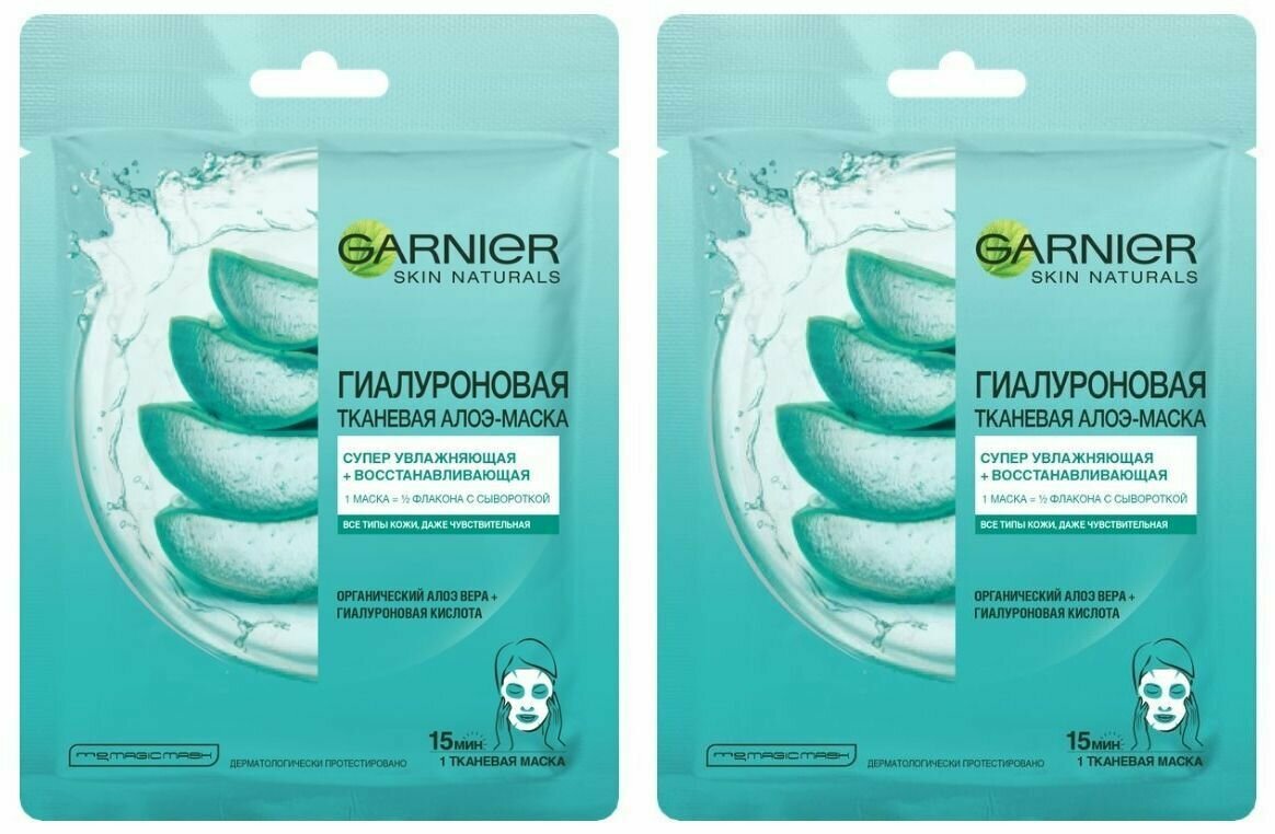 Garnier Маска тканевая Гиалуроновая Алоэ для лица увлажнение и восстановление, 32 г, 2 шт интересное: