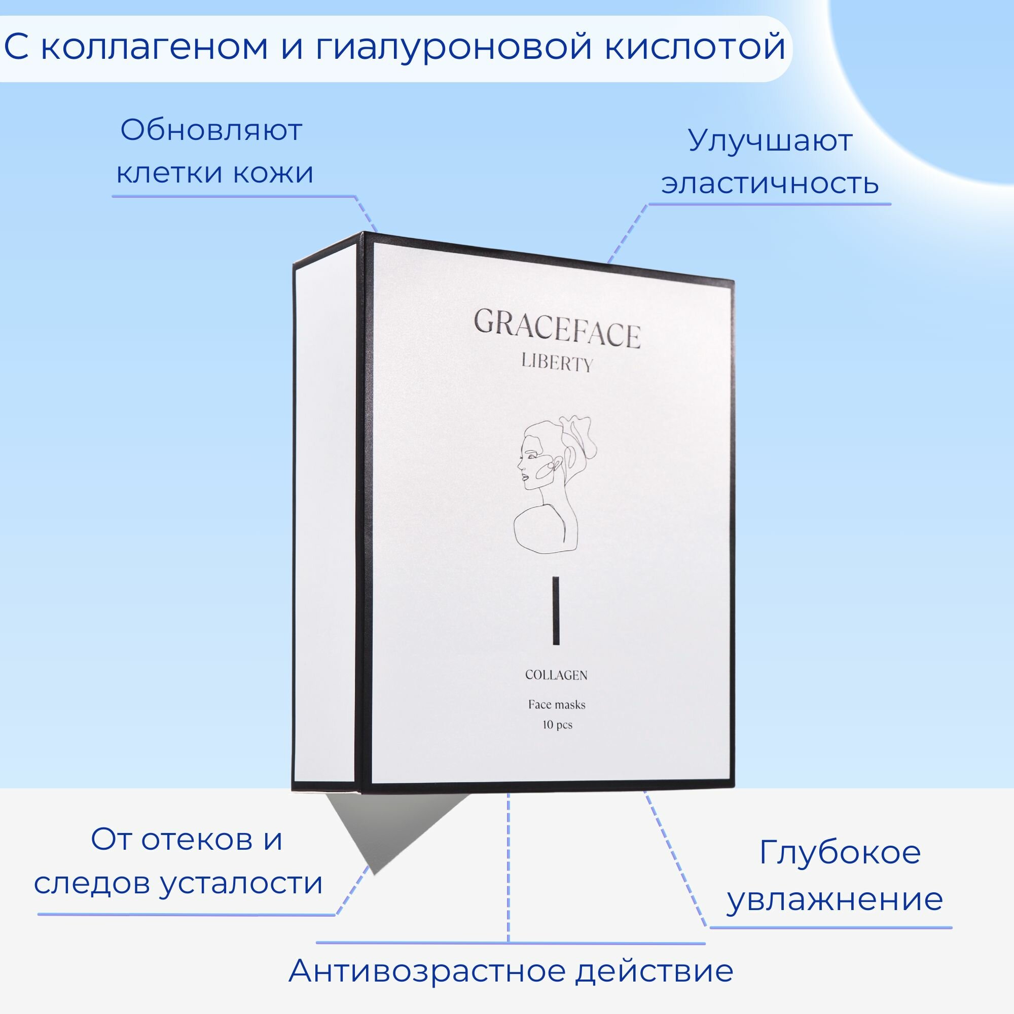 Купить Набор тканевых масок для лица Grace FACE 10 шт*25 г в коробке с коллагеном и гиалуроновой кислотой, увлажняющих