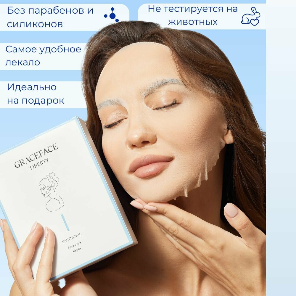Набор тканевых масок для лица Grace FACE 10 шт*25 г в коробке с пантенолом и центеллой азиатской, гиалуроновой кислотой, увлажняющих