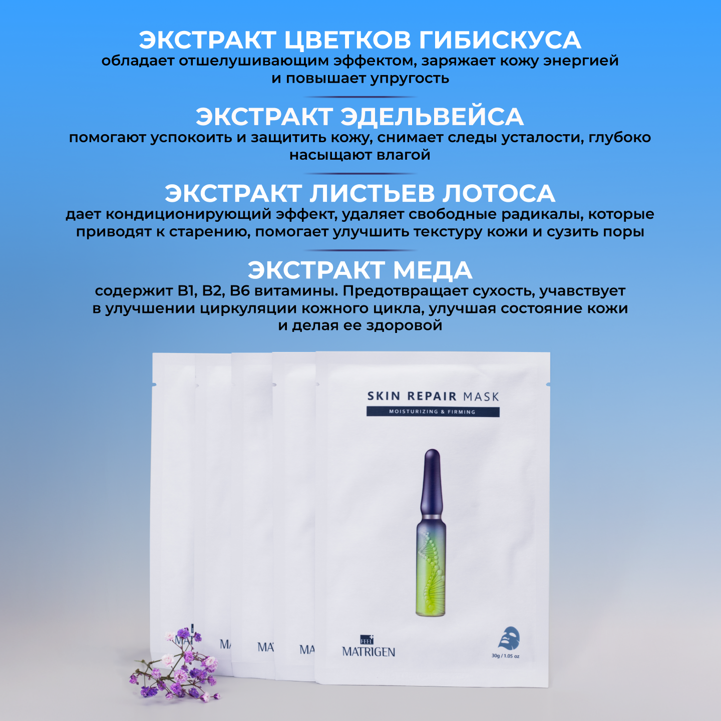 Matrigen Repair Mask Маска для лица тканевая для восстановления кожи, Корея 5 шт. интересное: