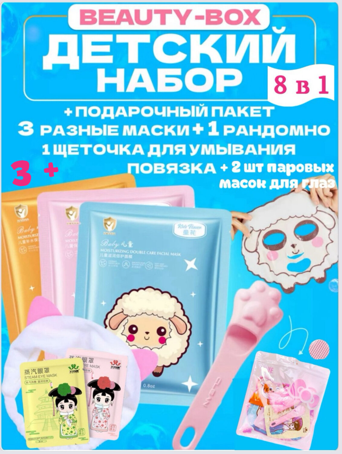 Купить Маски для лица тканевые, детские для девочек, набор мега