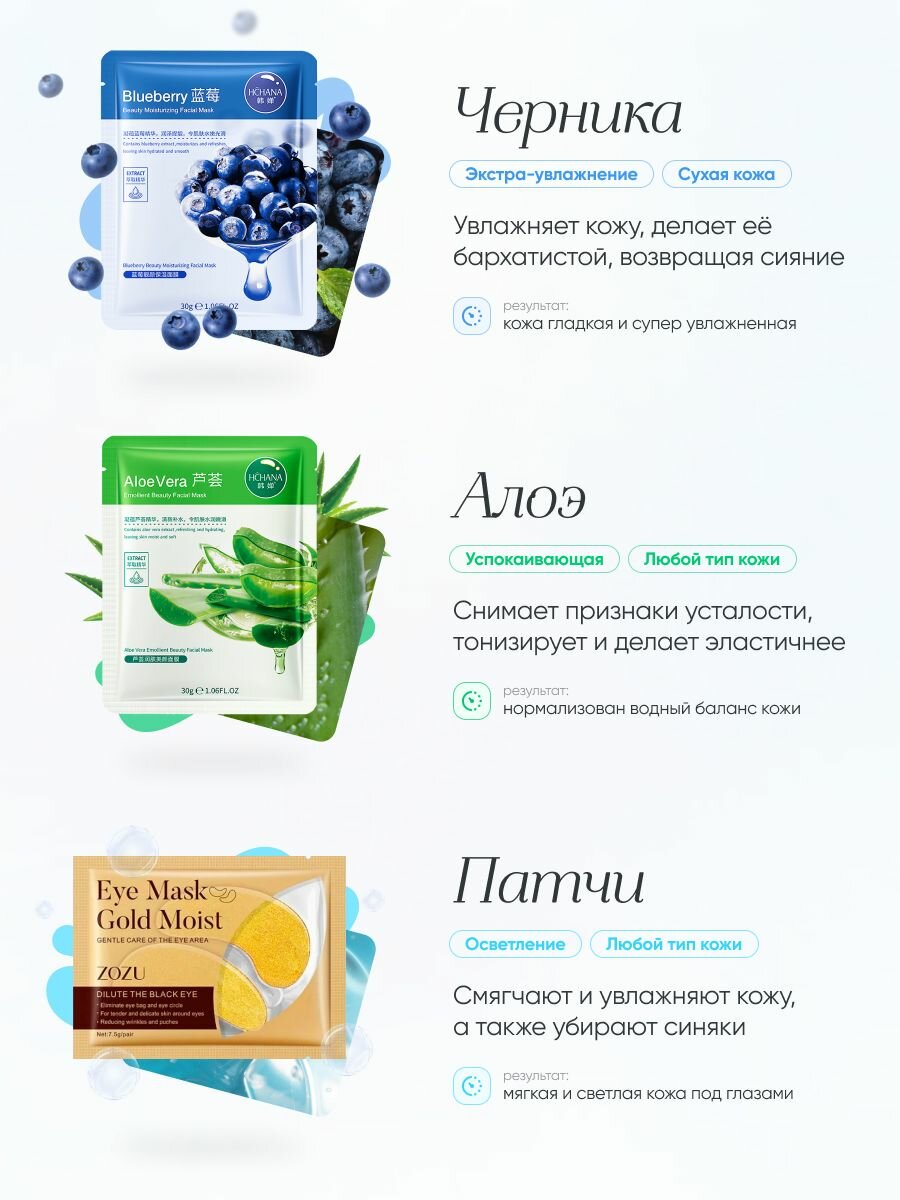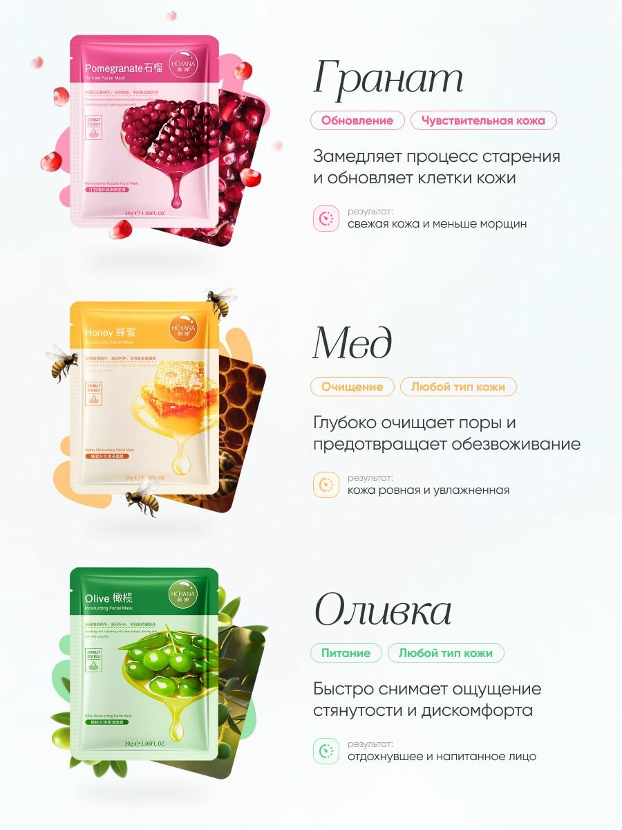 Косметические маски для лица тканевые набор (30шт) интересное: