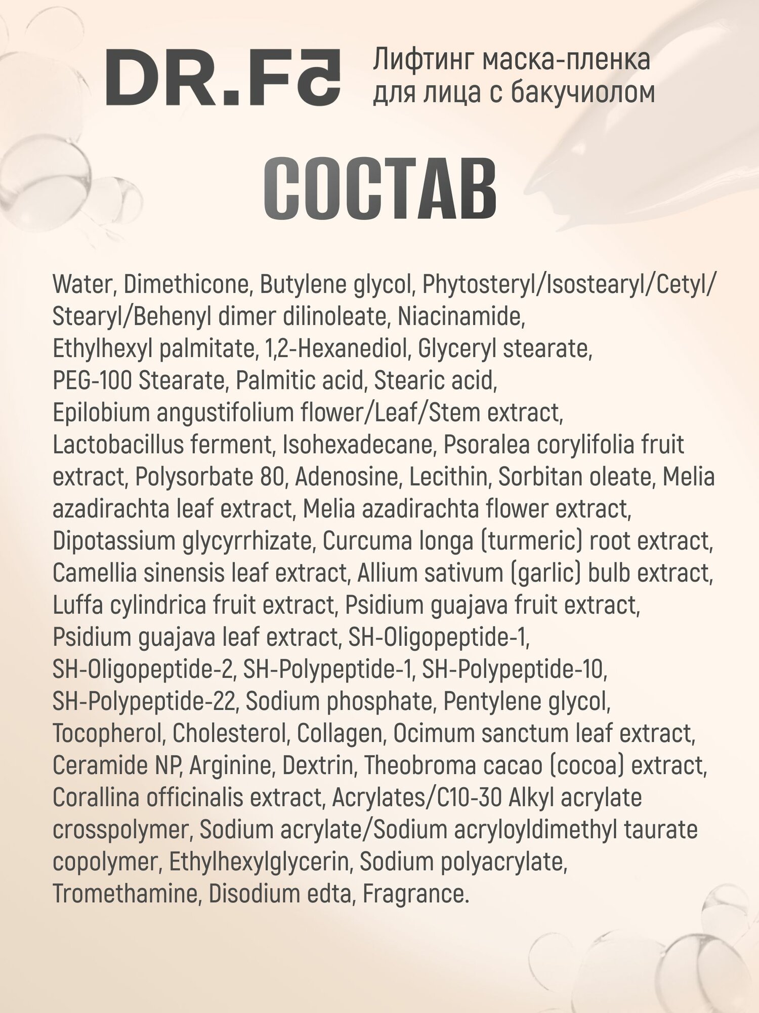 DR. F5 Маска пленка с лифтинг эффектом и пептидами Корея, 80 мл интересное: