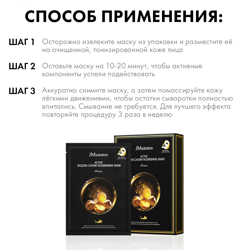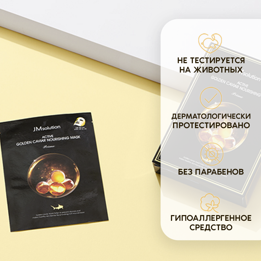Купить Маска для лица с экстрактом икры JMsolution ACTIVE GOLDEN CAVIAR NOURISHING MASK Prime, Корея 10 штук