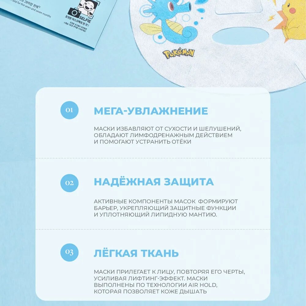 Подарочный набор разных масок Pokemon от корейского бренда JMsolution, 10 шт