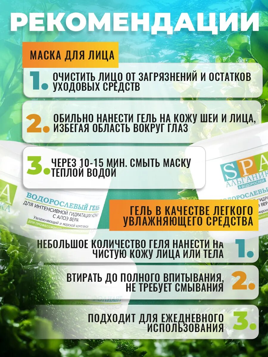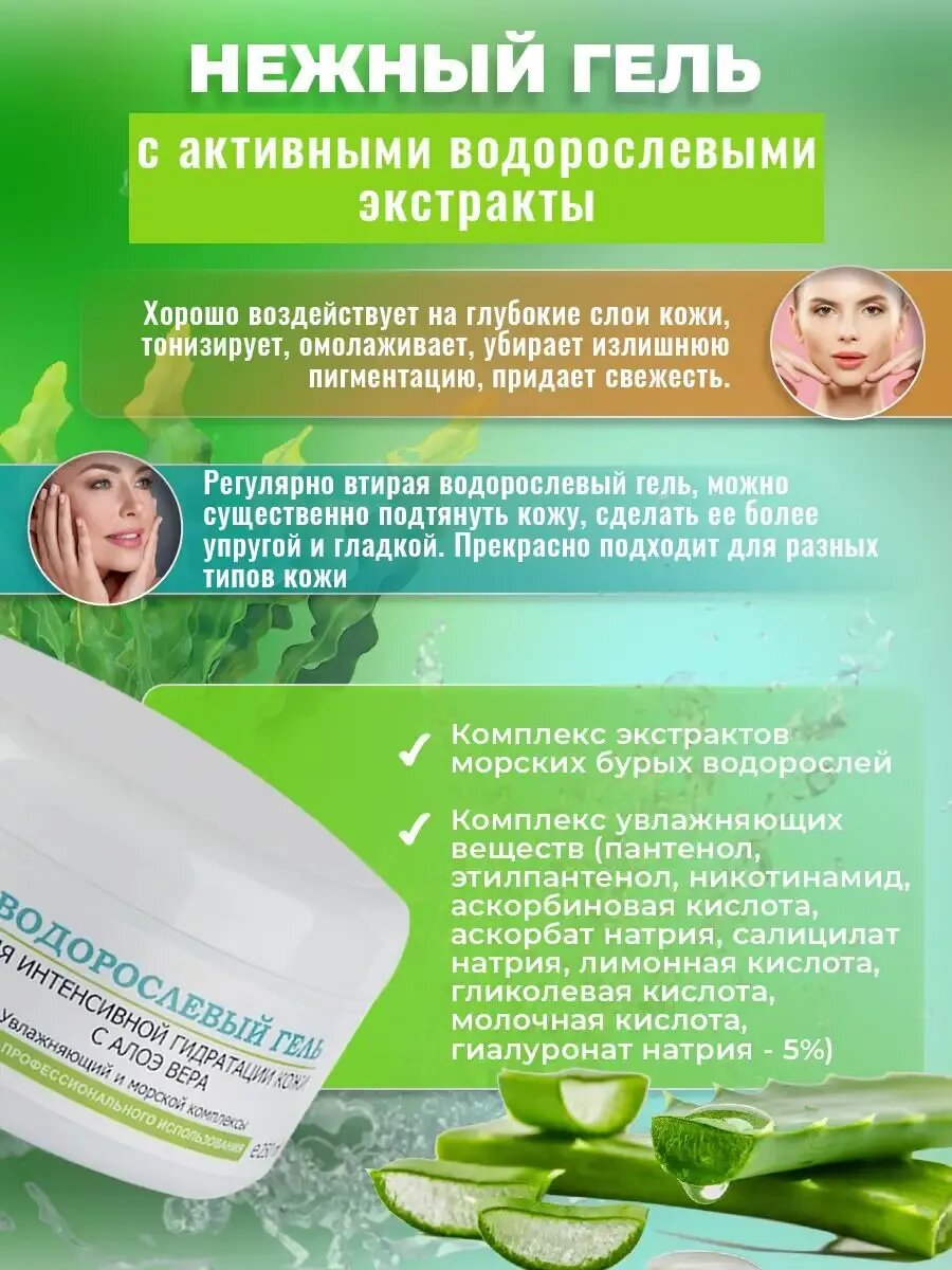 Водорослевый гель для лица с алоэ вера 250 мл. против пигментации, обновление и омоложение интересное: