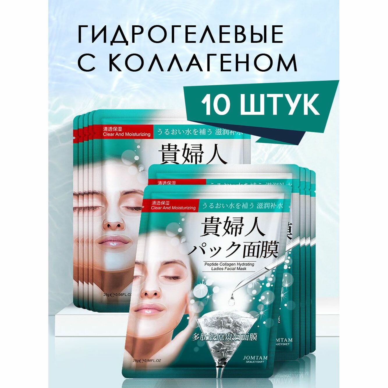Маска для лица гидрогелевая для лица увлажняющая косметическая с коллагеном / Набор масок 10 штук интересное: