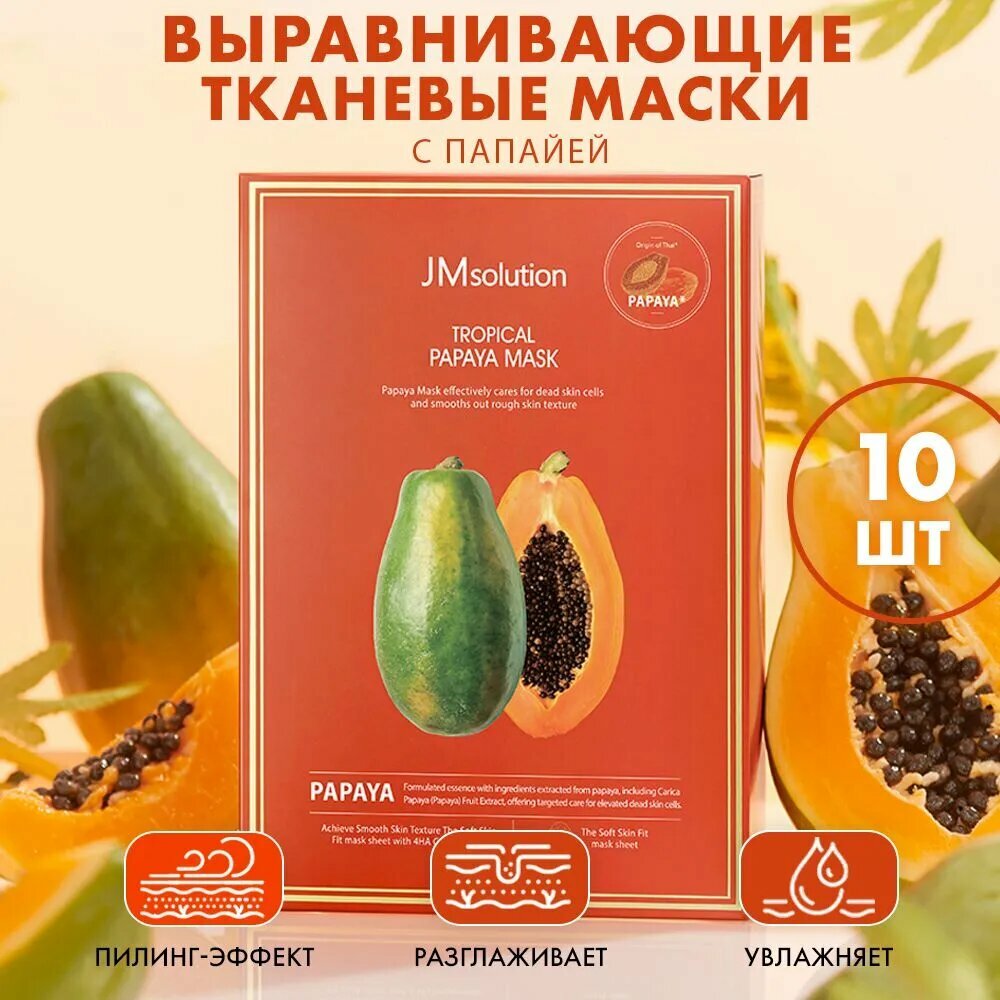 Купить Маска для лица с папайей Jmsolution Tropical Papaya Mask, Корея 10 штук
