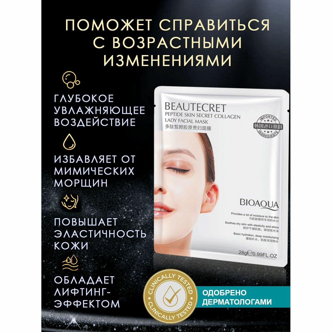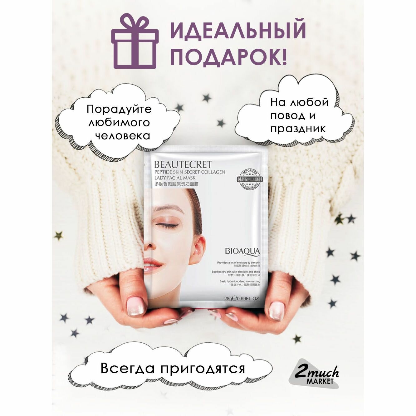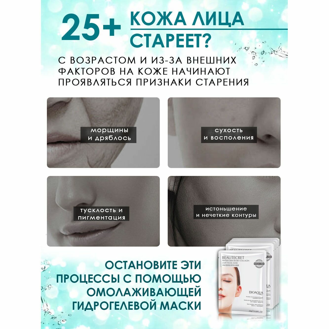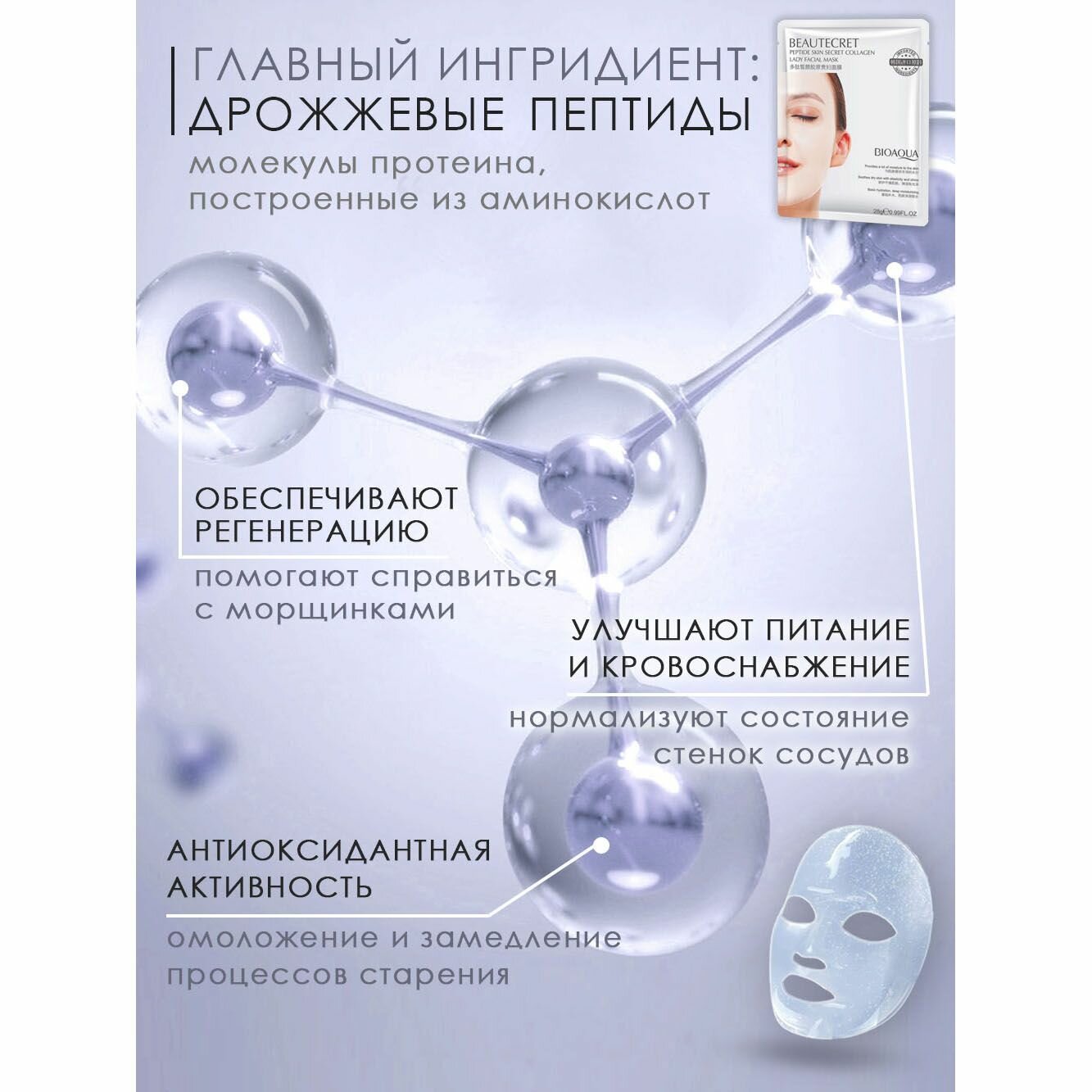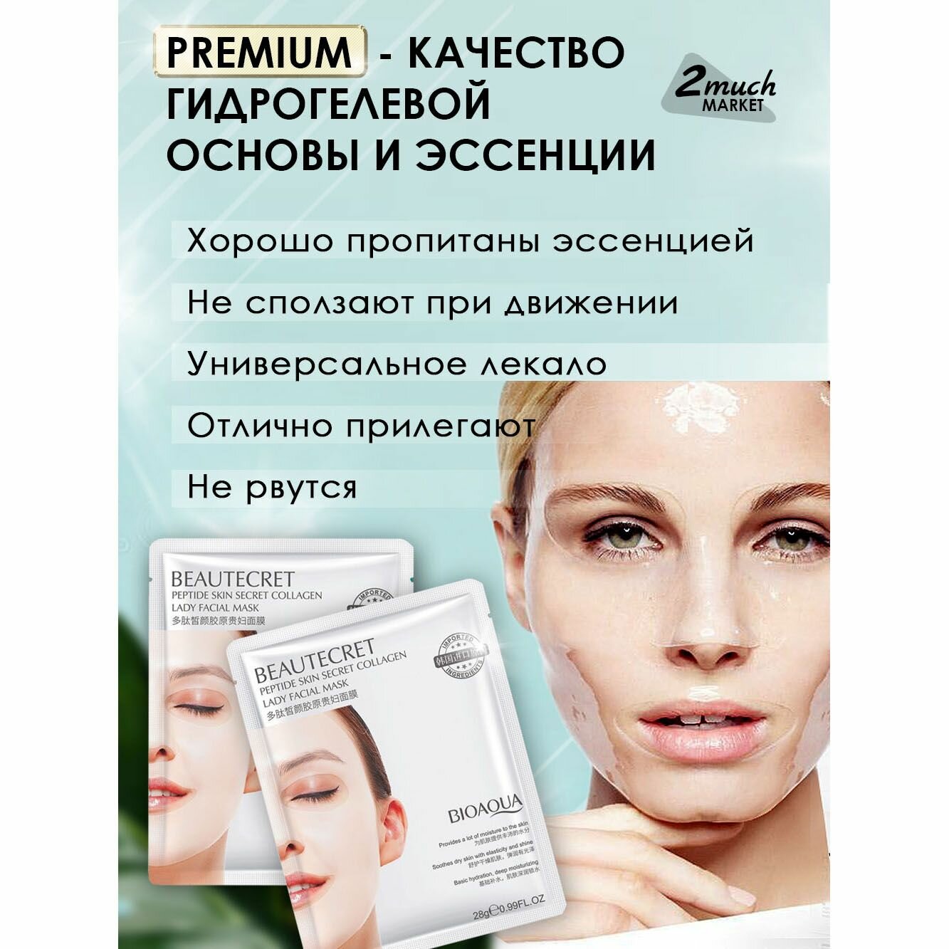 Маска для лица гидрогелевая c пептидами, набор масок 10 штук. интересное: