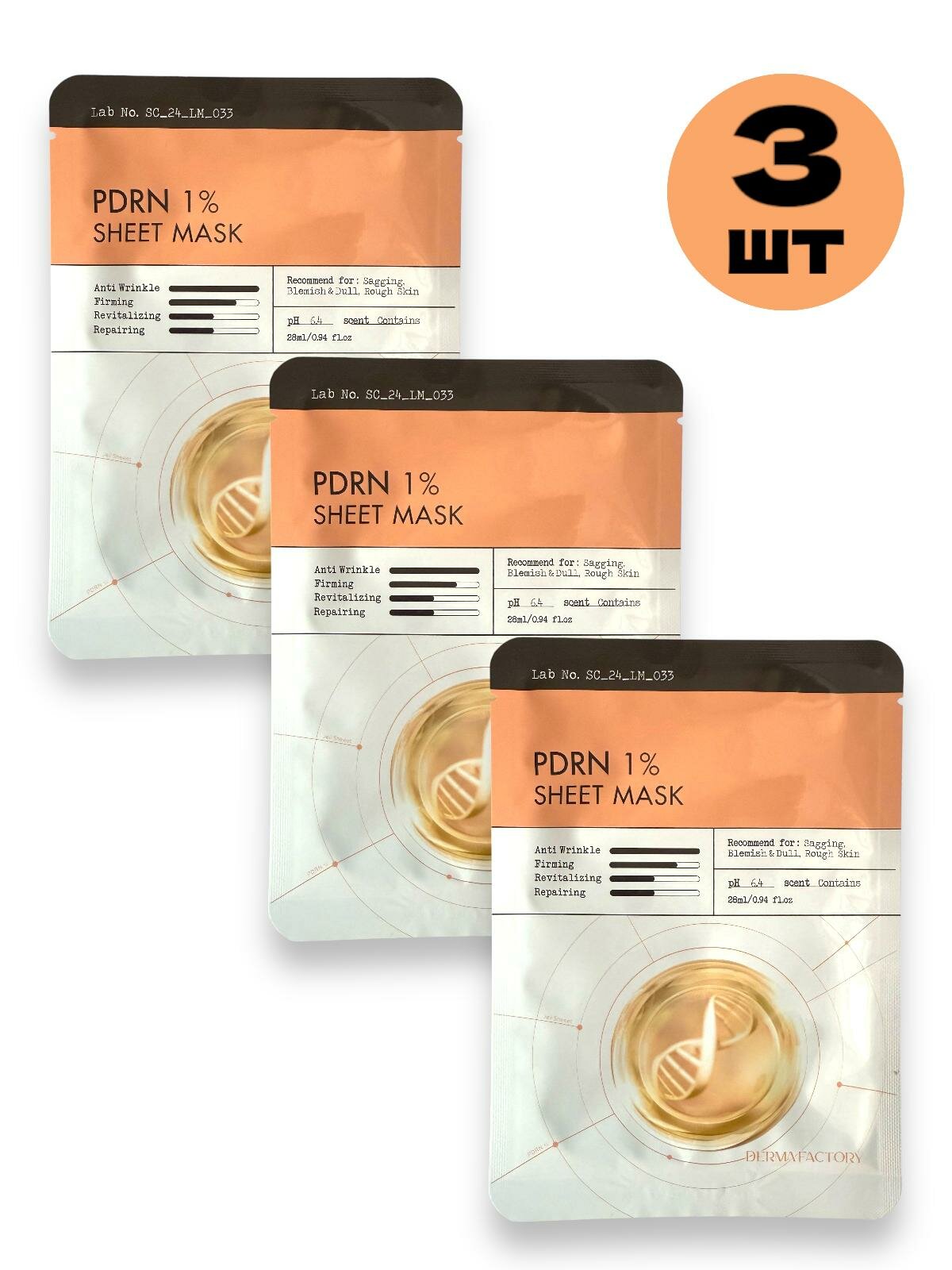 Derma Factory Набор омолаживающих тканевых масок для лица PDRN 1% Sheet Mask 3 шт. интересное: