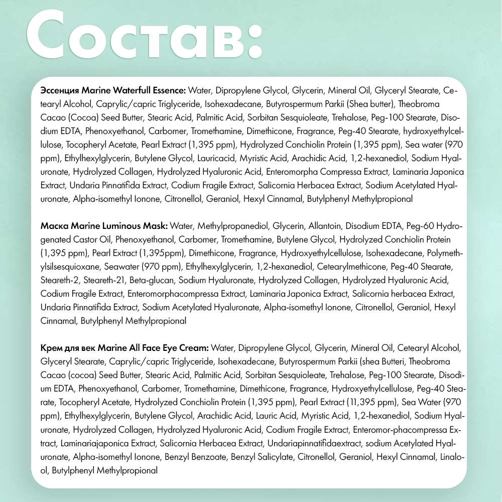 СохранитьМаски для лица трехшаговый уход MARINE LUMINOUS PEARL DEEP MOISTURE MASK PEARL, 10 штук интересное: