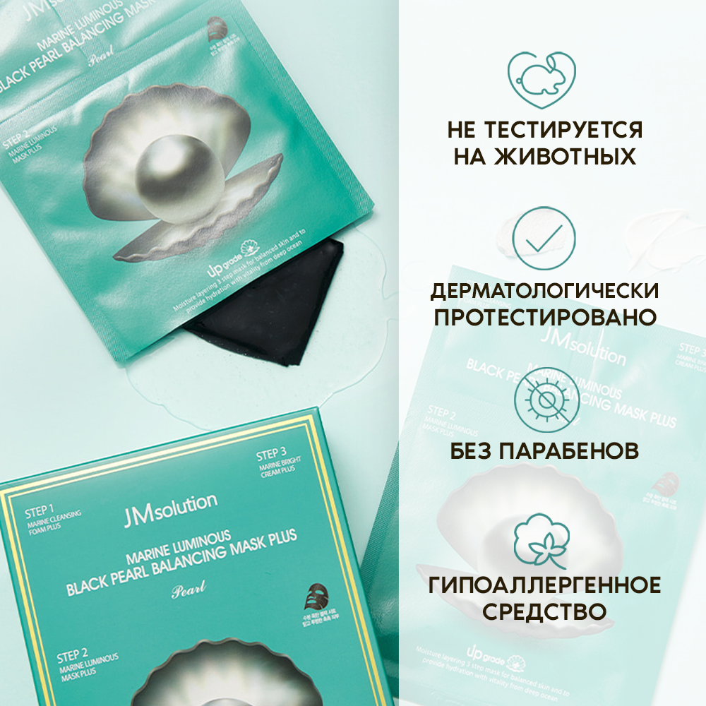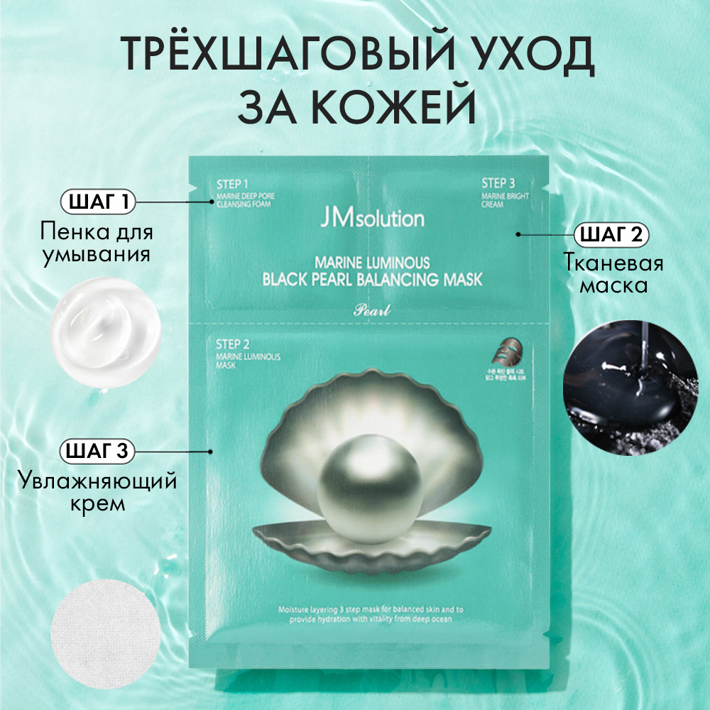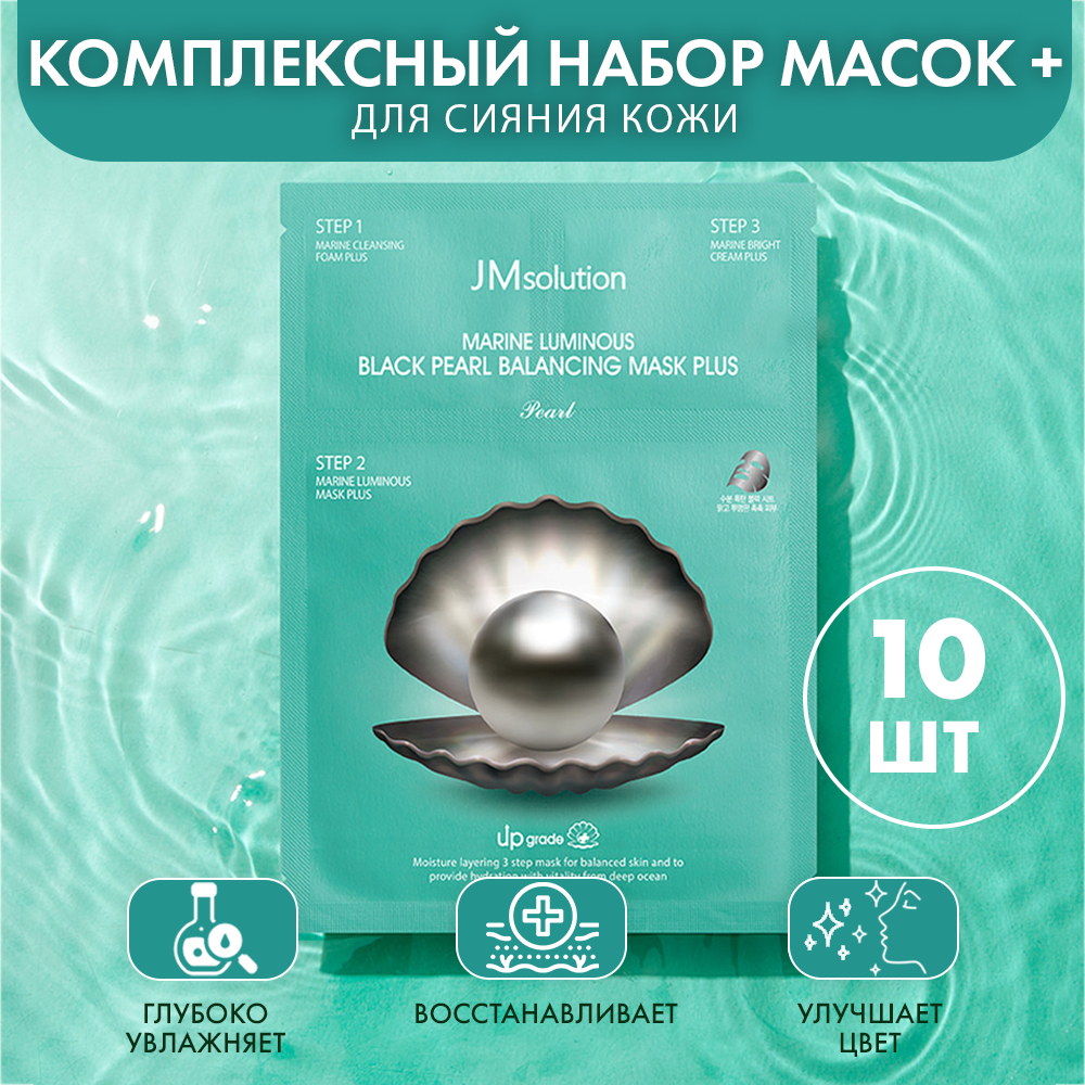 Купить JMsolution Набор тканевых масок MARINE LUMINOUS BLACK PEARL BALANCING MASK PEARL, Корея 10 штук